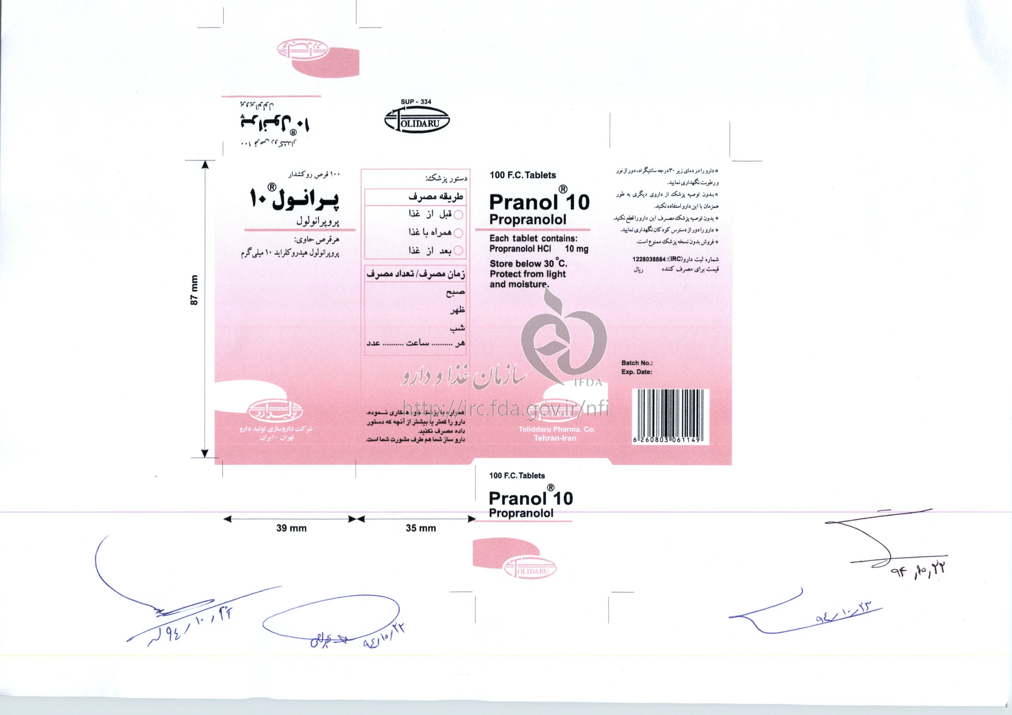 دکترها پرانول قرص خوراکی 10 mg