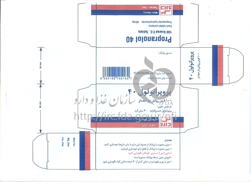 پروپرانولول قرص خوراکی 40 mg
