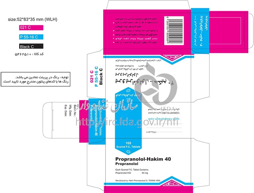 پروپرانولول - حکیم قرص خوراکی 40 mg