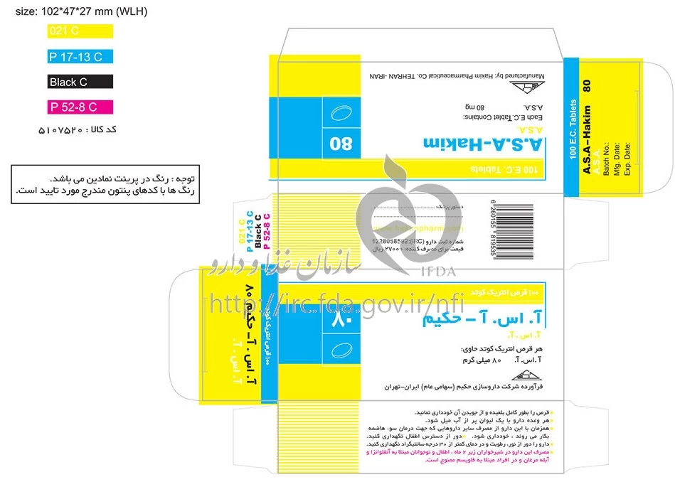 آ اس آ - حکیم قرص انتریک کوتد خوراکی 80 mg