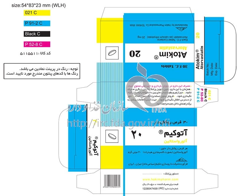 موارد مصرف ، عوارض جانبی ، مصرف بارداری و تداخلات دارویی آتوکیم قرص خوراکی 20 mg