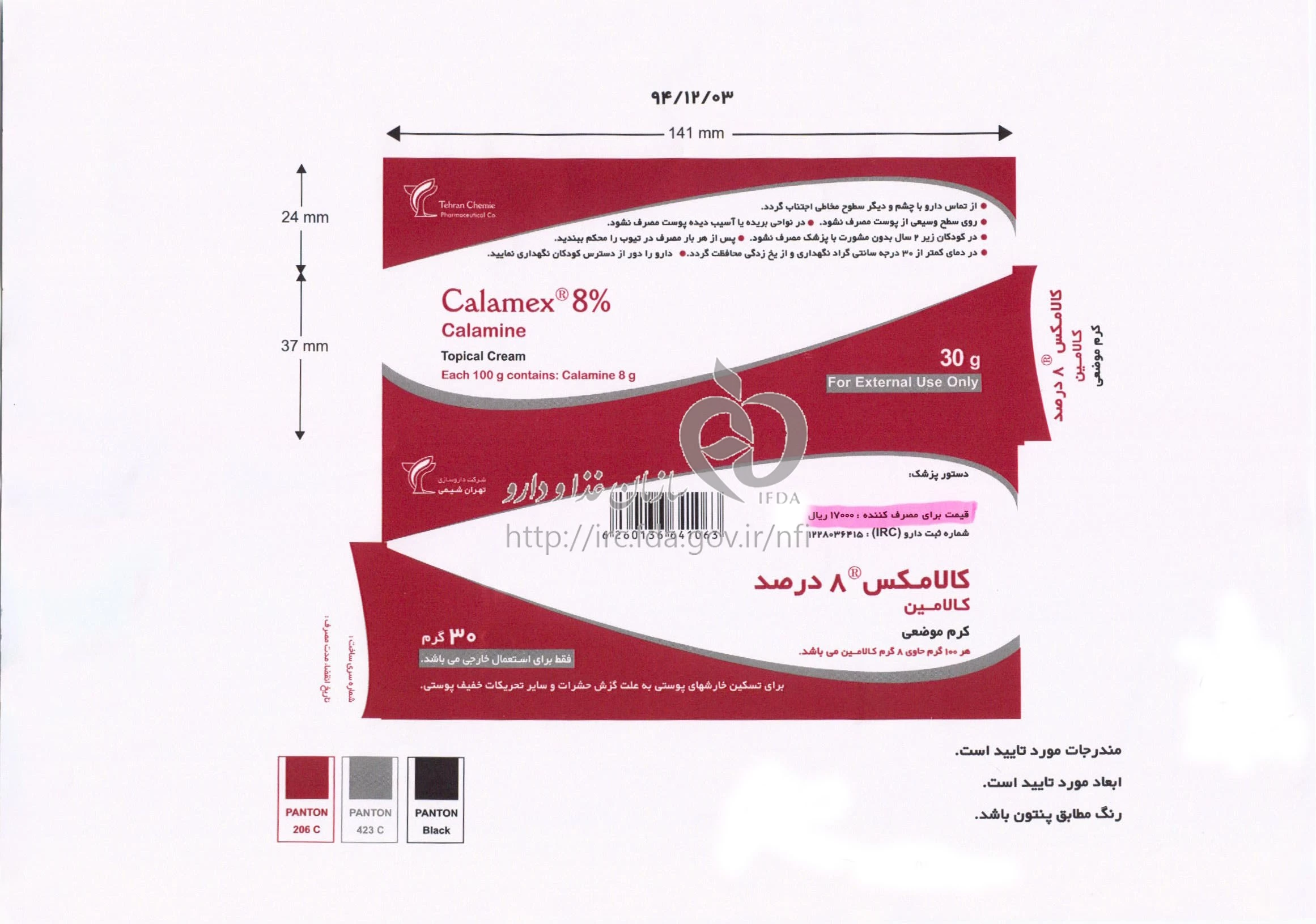 CALAMINE CREAM TOPICAL 8 % 30GRAM