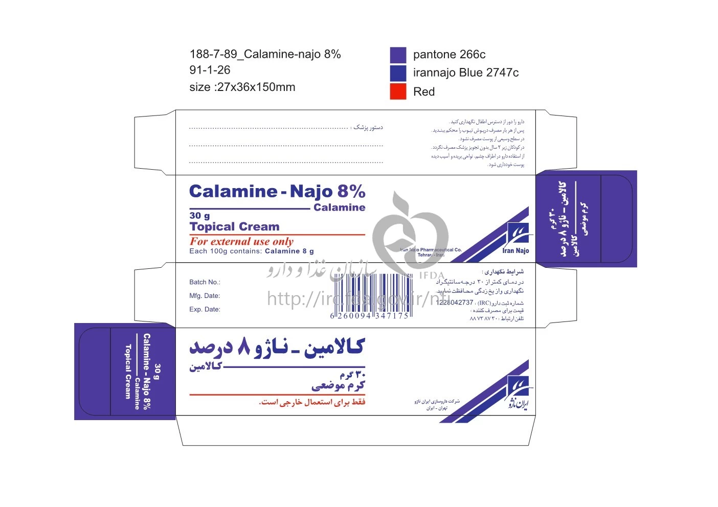 کالامین - ناژو کرم موضعی 8 % 30GRAM