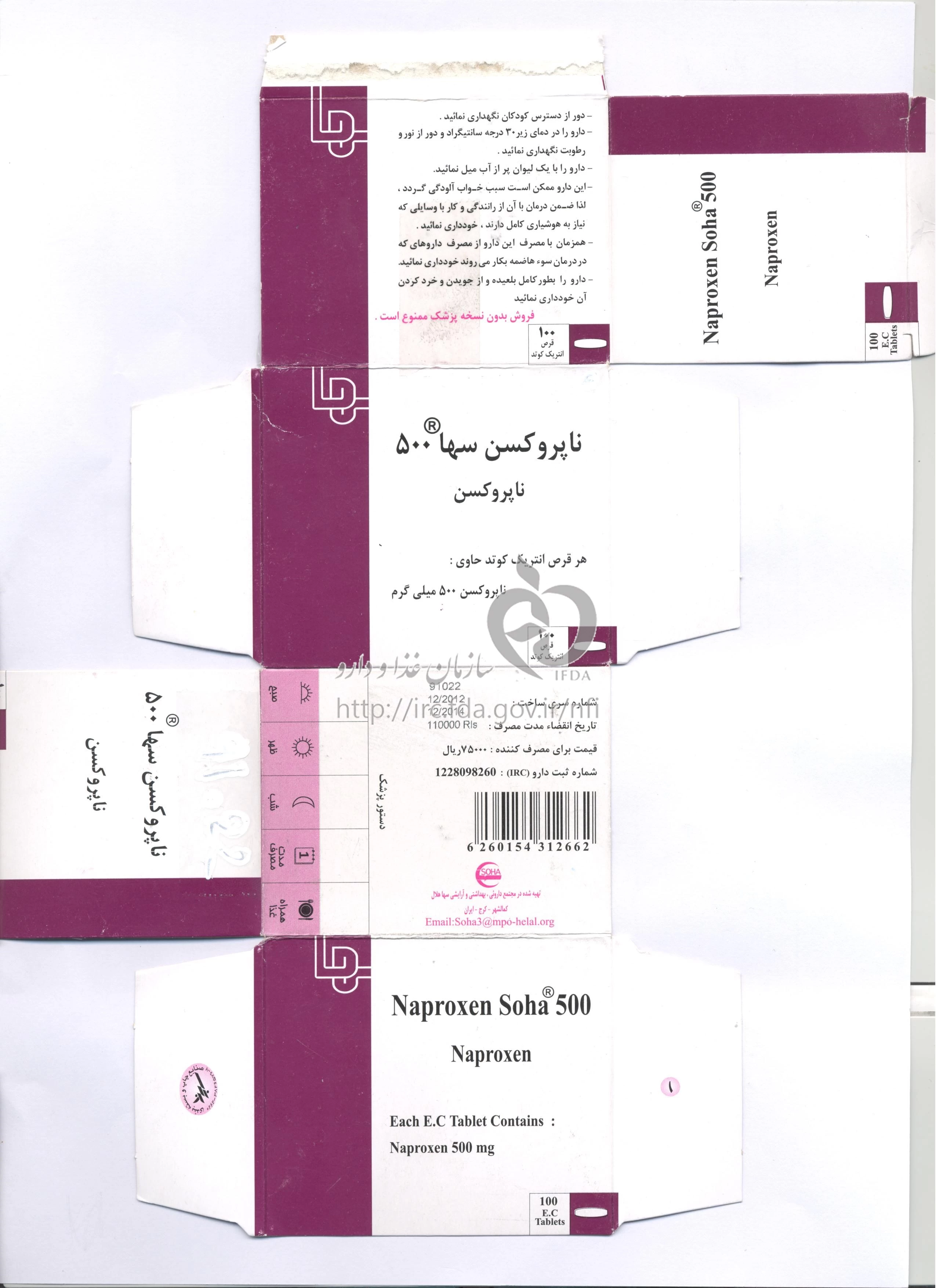 ناپروکسن سها قرص انتریک کوتد خوراکی 500 mg