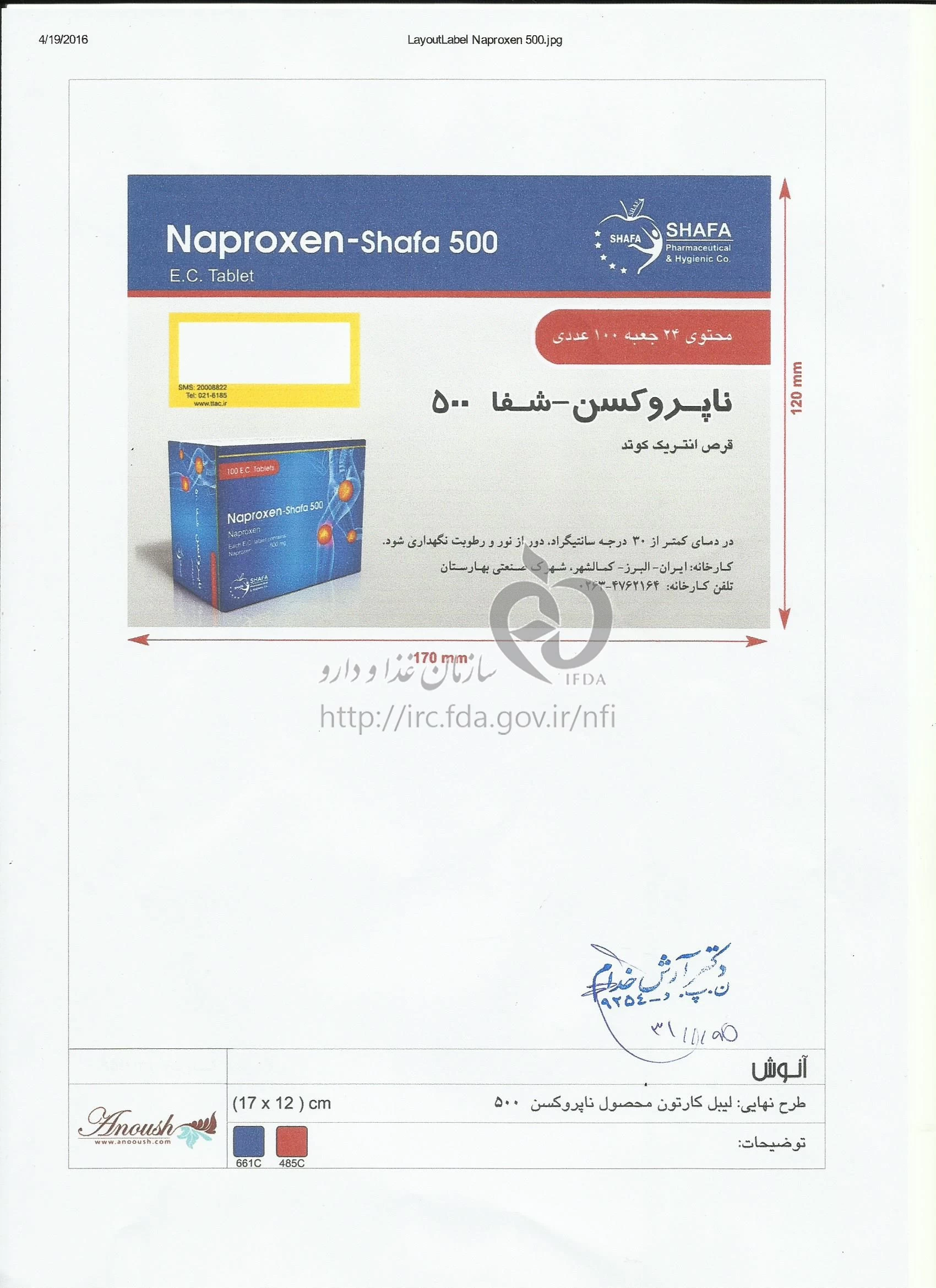 ناپروکسن - شفا قرص انتریک کوتد خوراکی 500 mg
