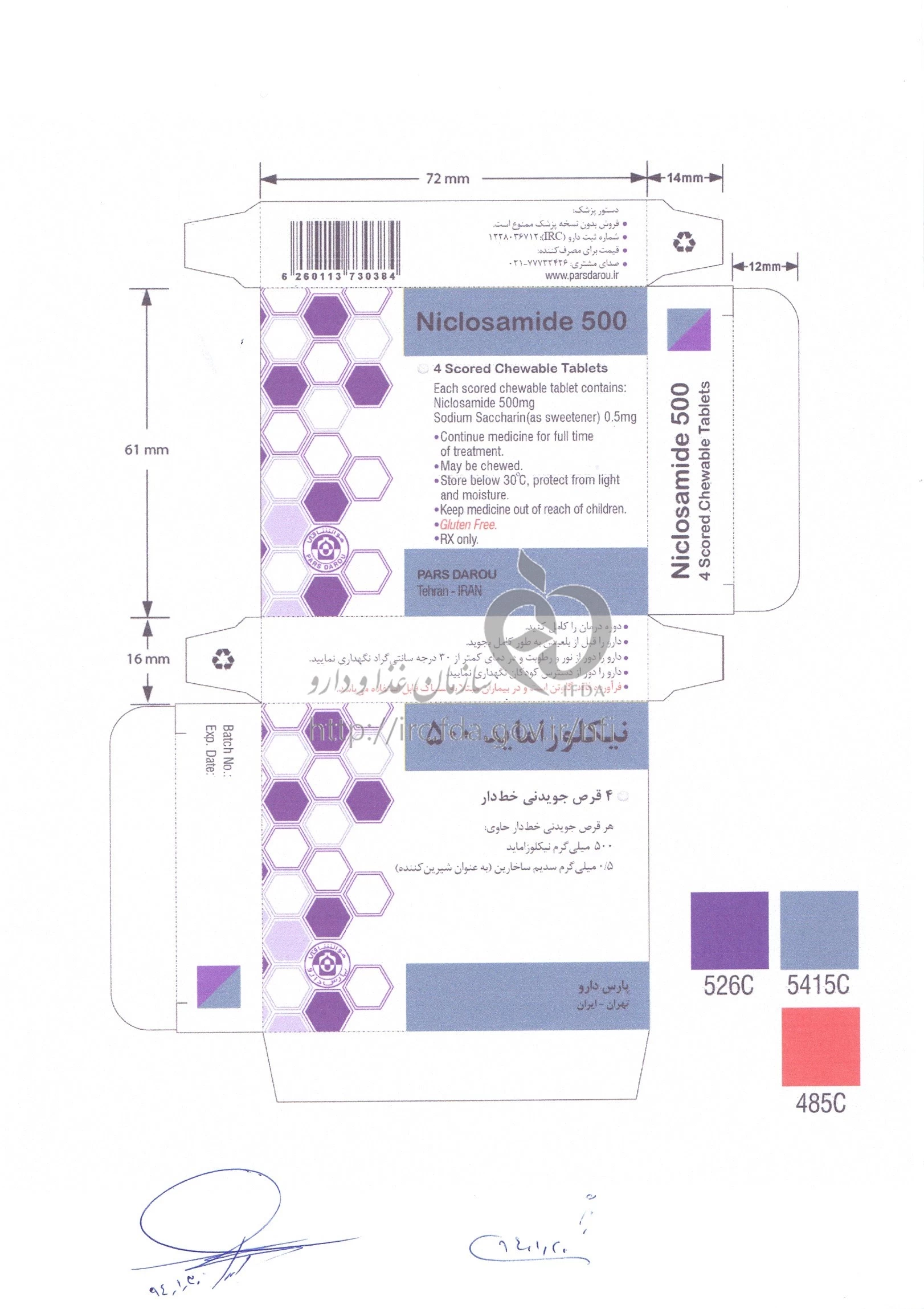 نیکلوزاماید قرص جویدنی خوراکی 500 mg