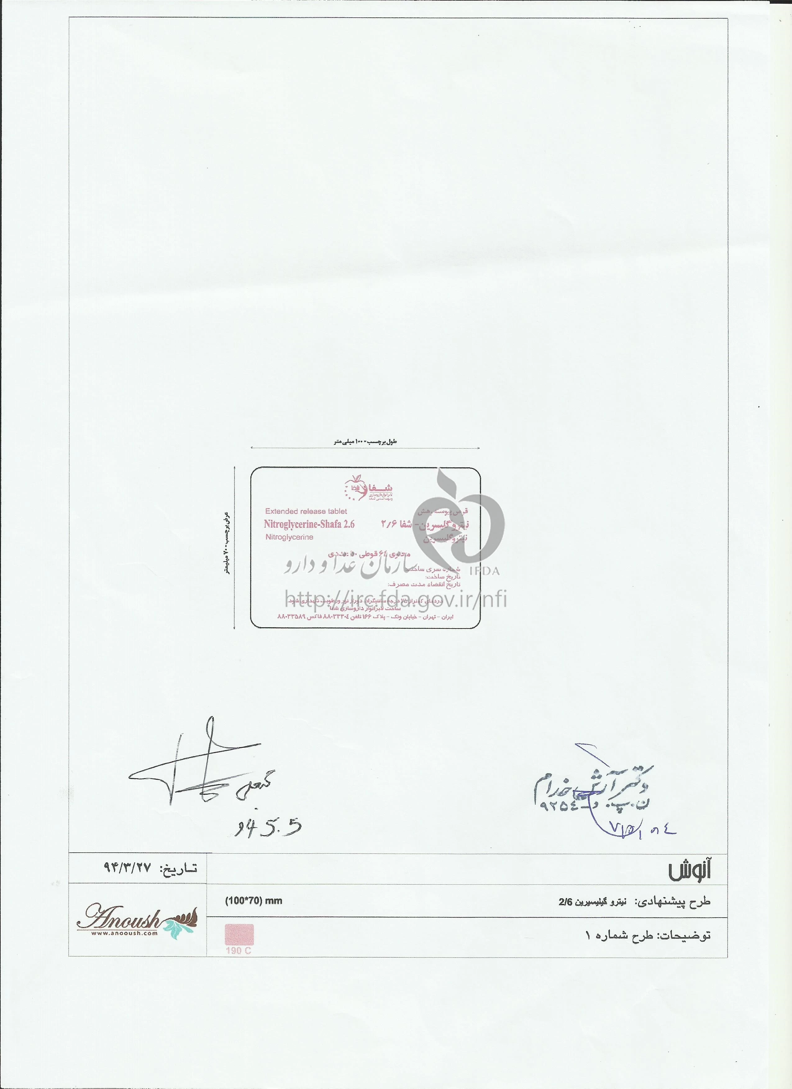 مصرف همزمان نيتروگليسرين با فراورده هاي حاوي الكل، داروهاي پایينآورنده فشار خون يا داروهاي گشادكننده عروق ممكن است کمی فشار خون ناشي از اثرات نيتروگليسرين را تشديد كند.