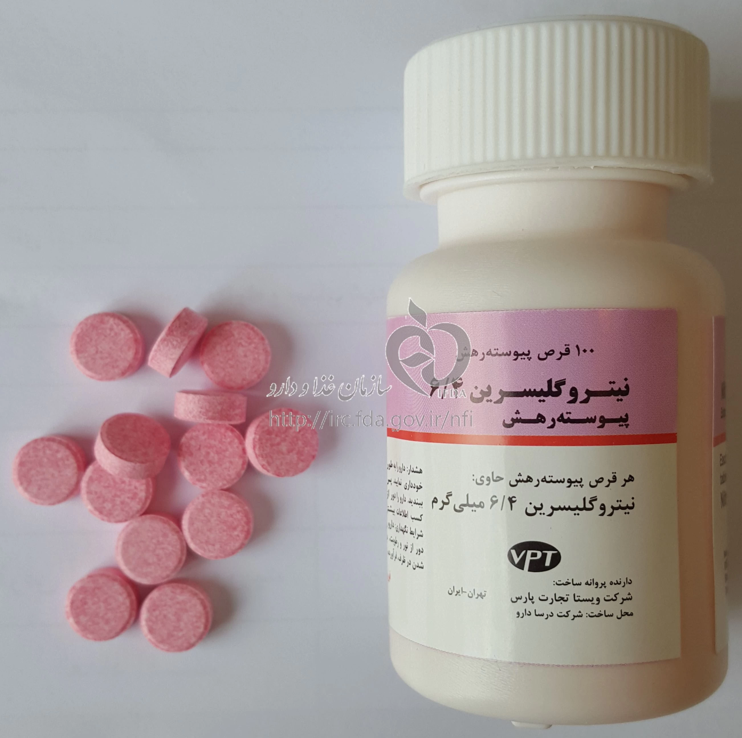 نیتروگلیسرین قرص پیوسته رهش خوراکی 6.4 mg