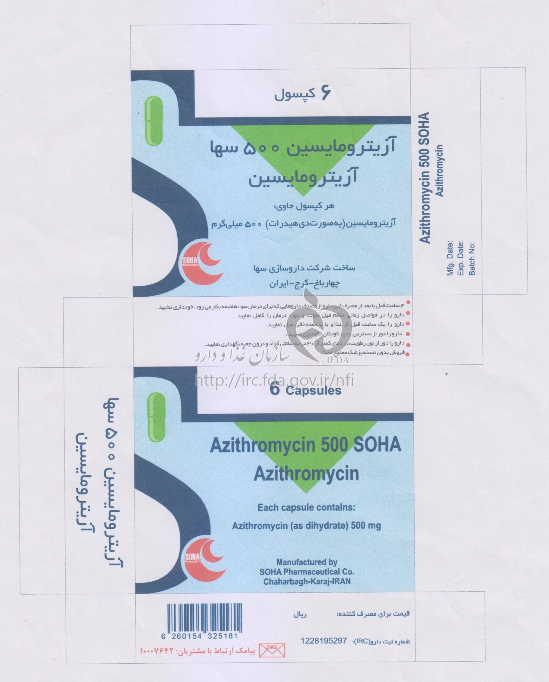 دکترها آزیترومایسین سها کپسول خوراکی 500 mg