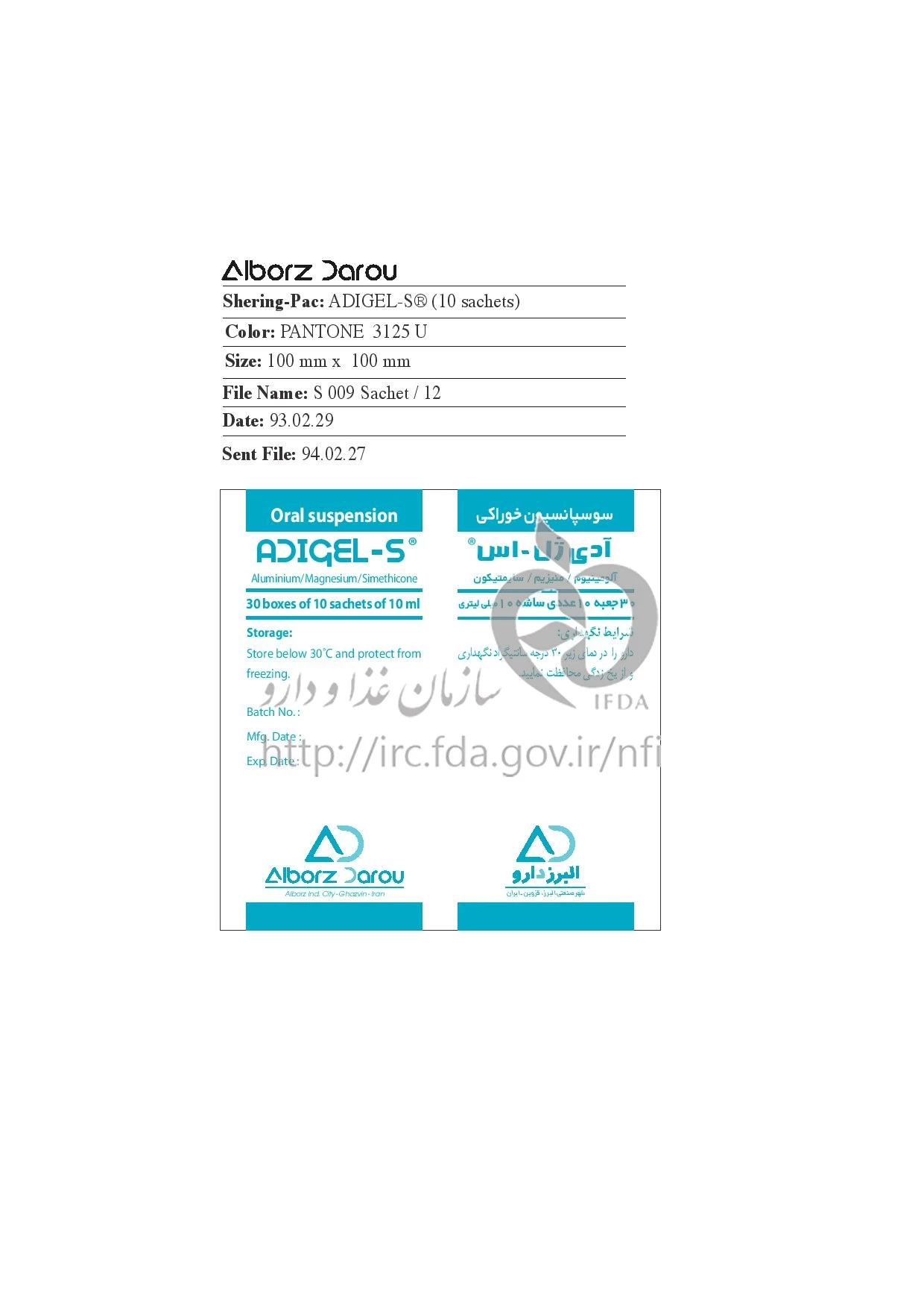 آدی ژل - اس سوسپانسیون خوراکی 225 mg/200 mg/25 mg/5mL 10MILLILITER