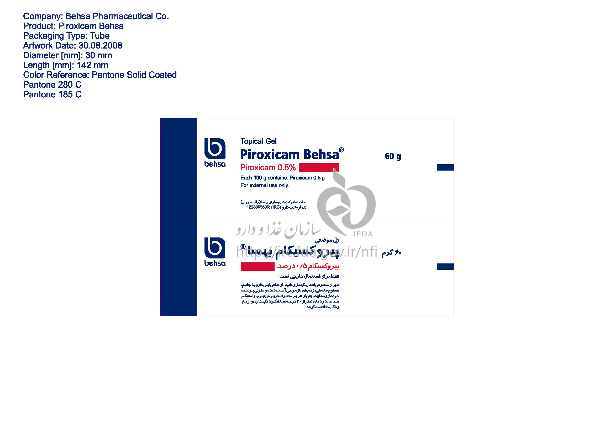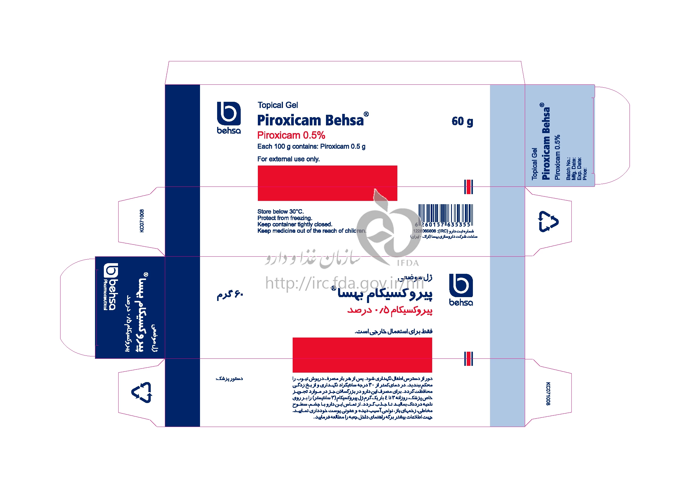 پیروکسیکام بهسا ژل موضعی 0.5 g/100g 60GRAM