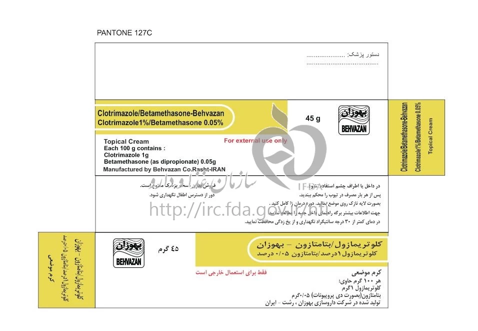 کلوتریمازول/بتامتازون - بهوزان کرم موضعی 1 %/0.05 % 45GRAM