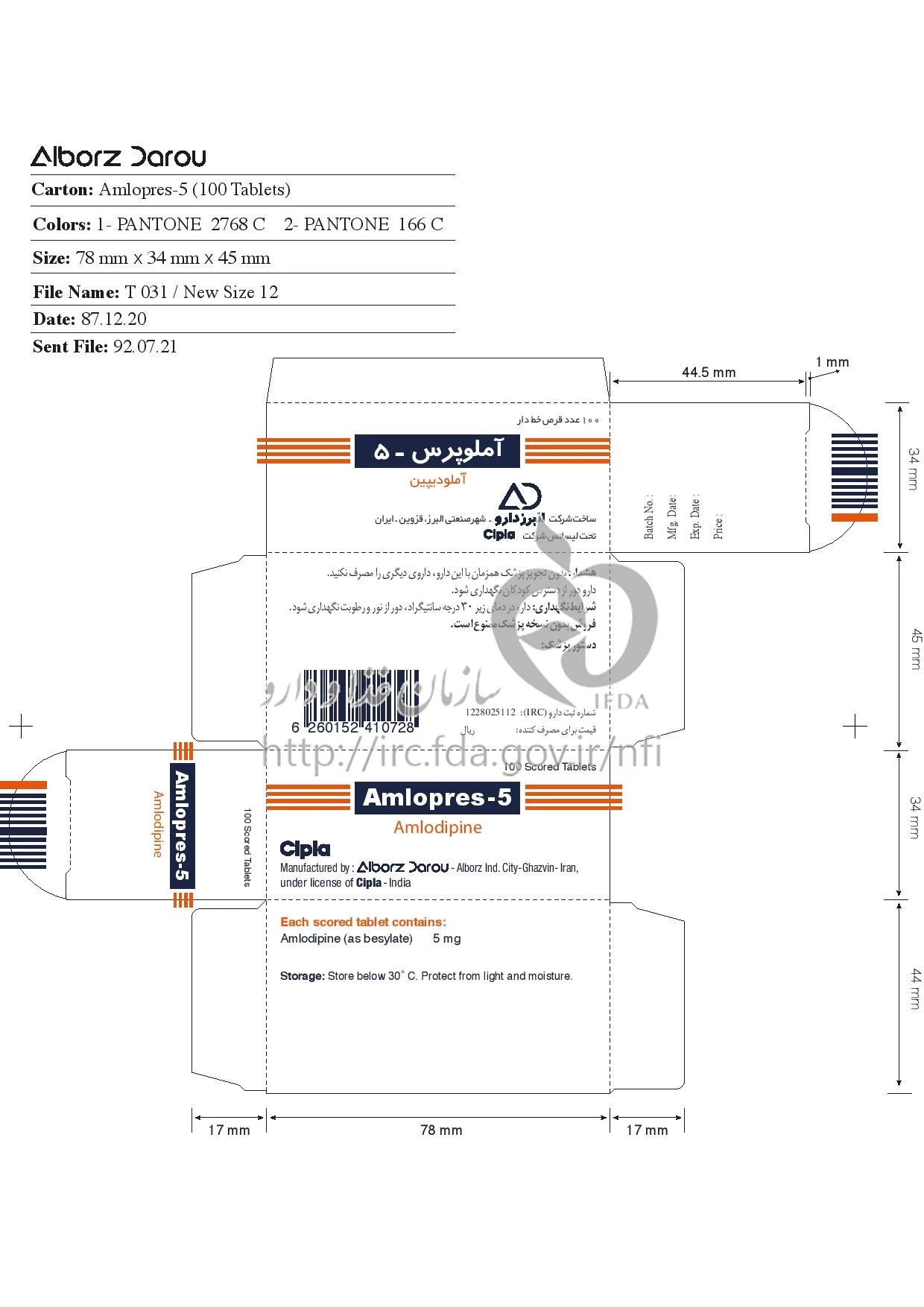 آملوپرس قرص خوراکی 5 mg