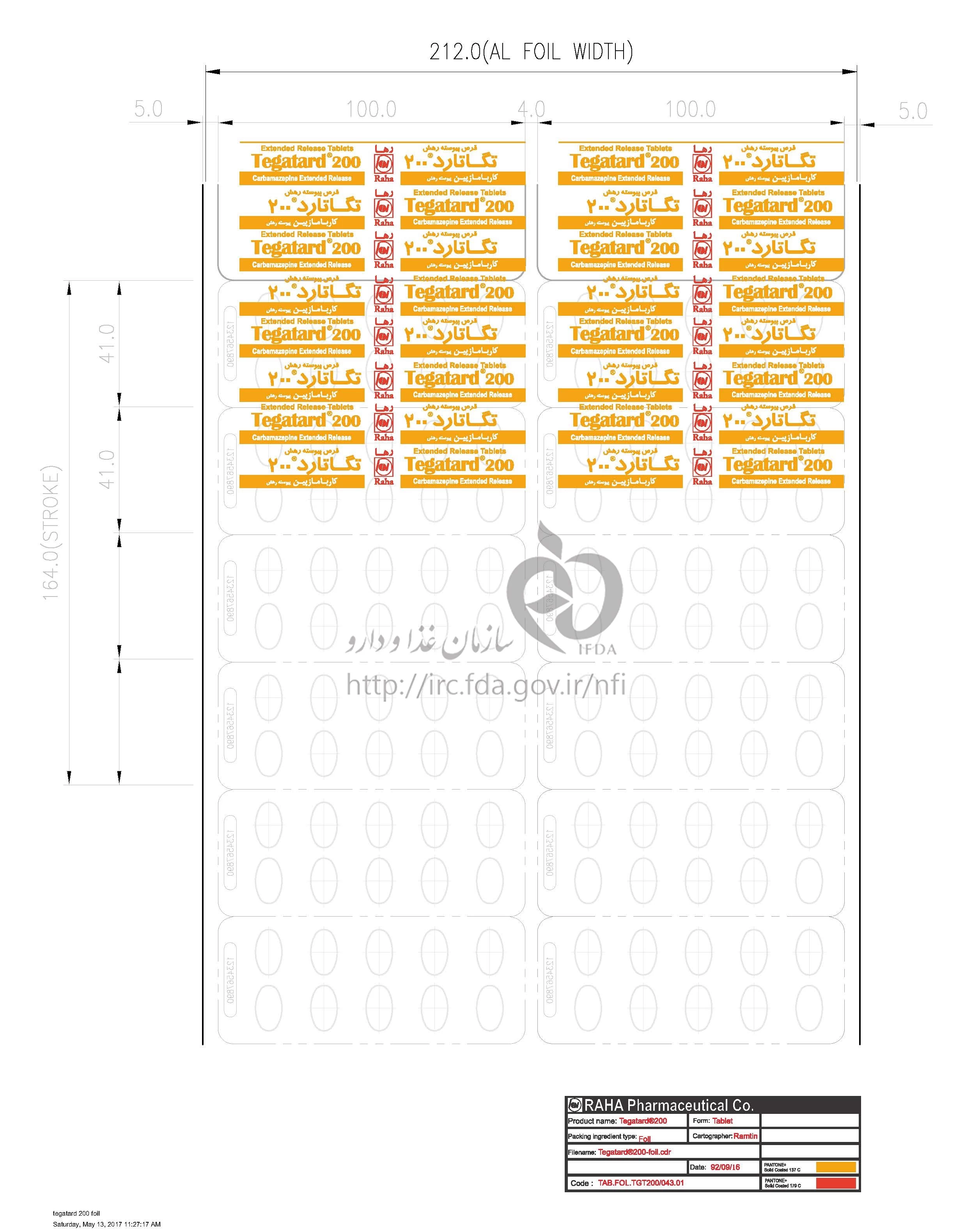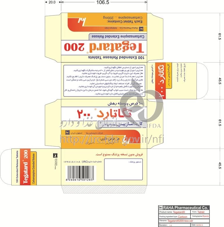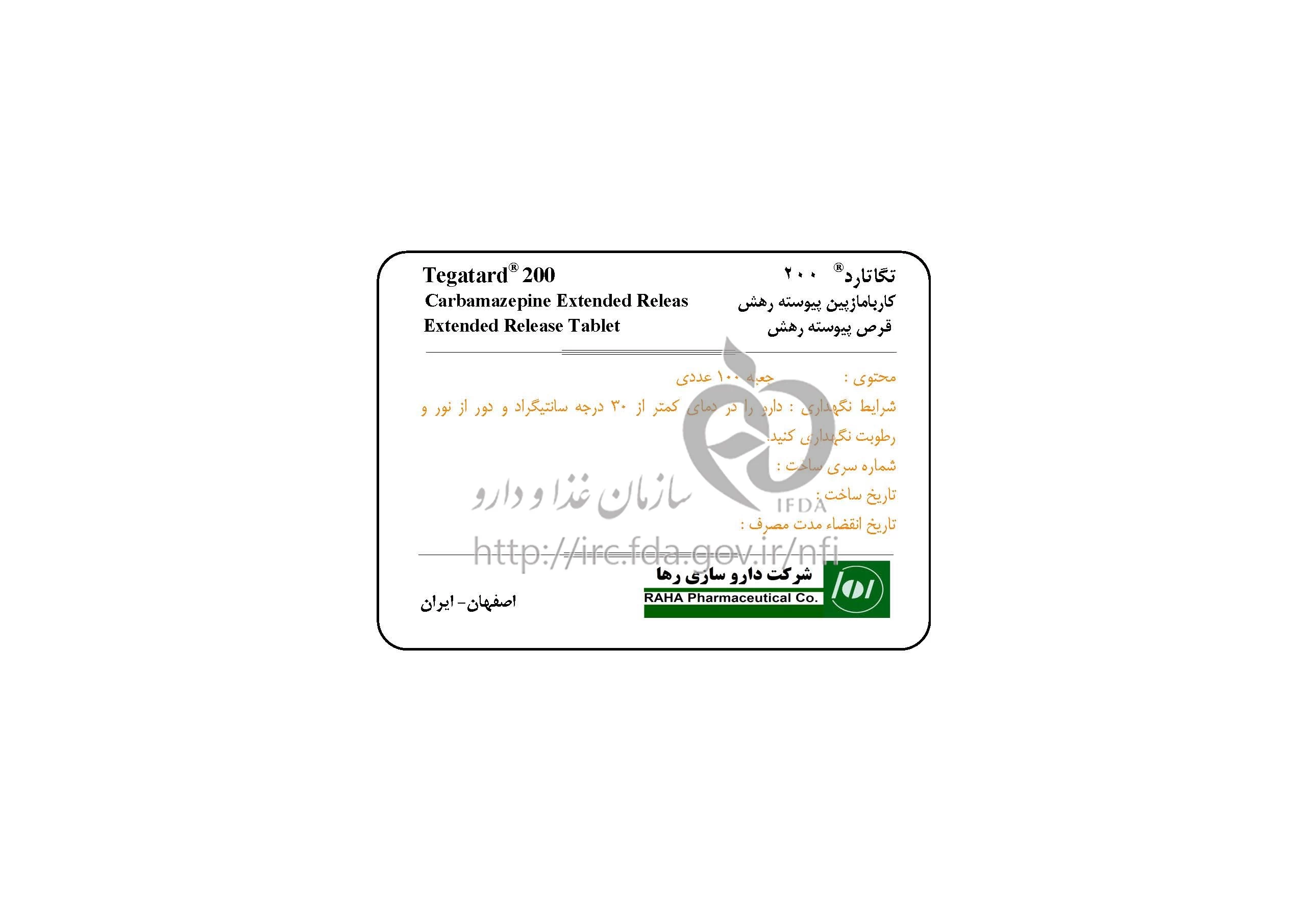 تگاتارد قرص پیوسته رهش خوراکی 200 mg
