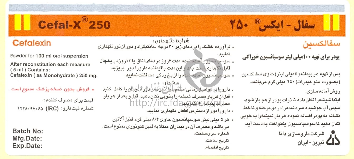 سفال - ایکس پودر برای تهیه سوسپانسیون خوراکی 250 mg/5 mL 100MILLILITER