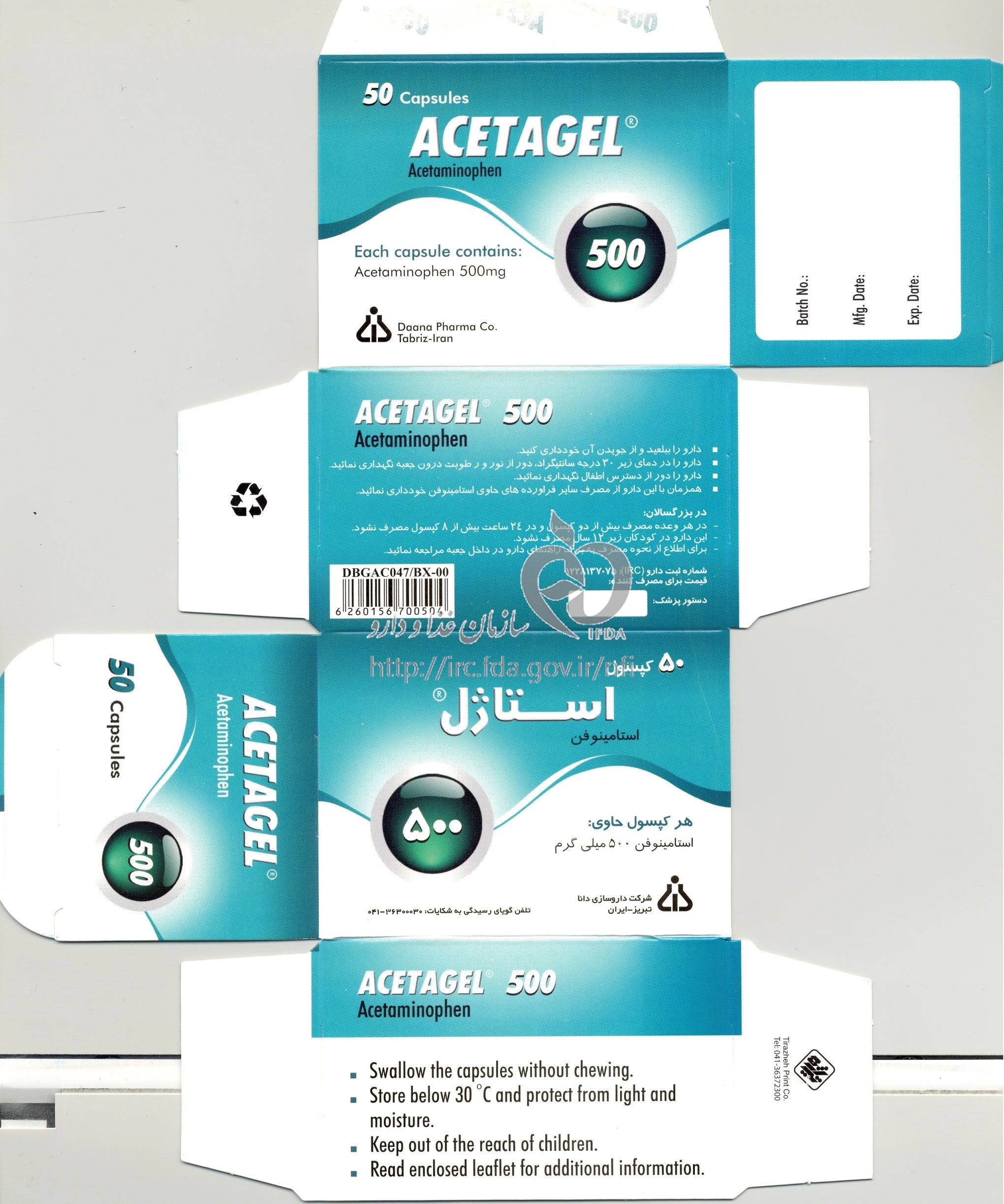 نکات قابل توصیه استاژل کپسول با روکش ژلاتین خوراکی 500 mg