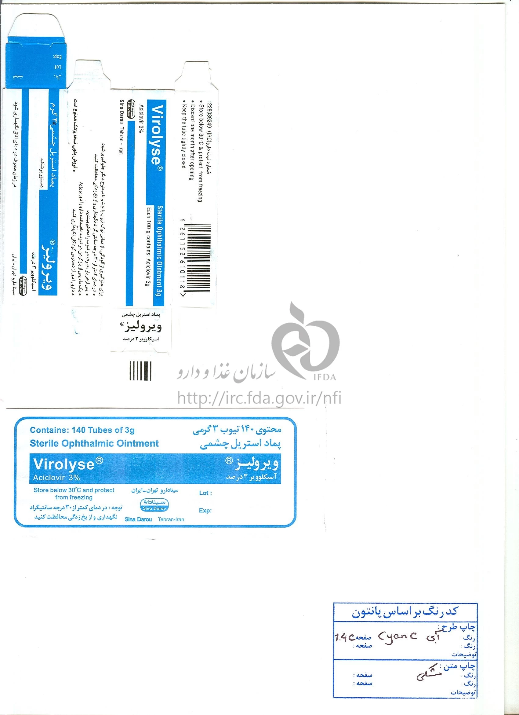 ویرولیز پماد چشمی 3 % 3GRAM