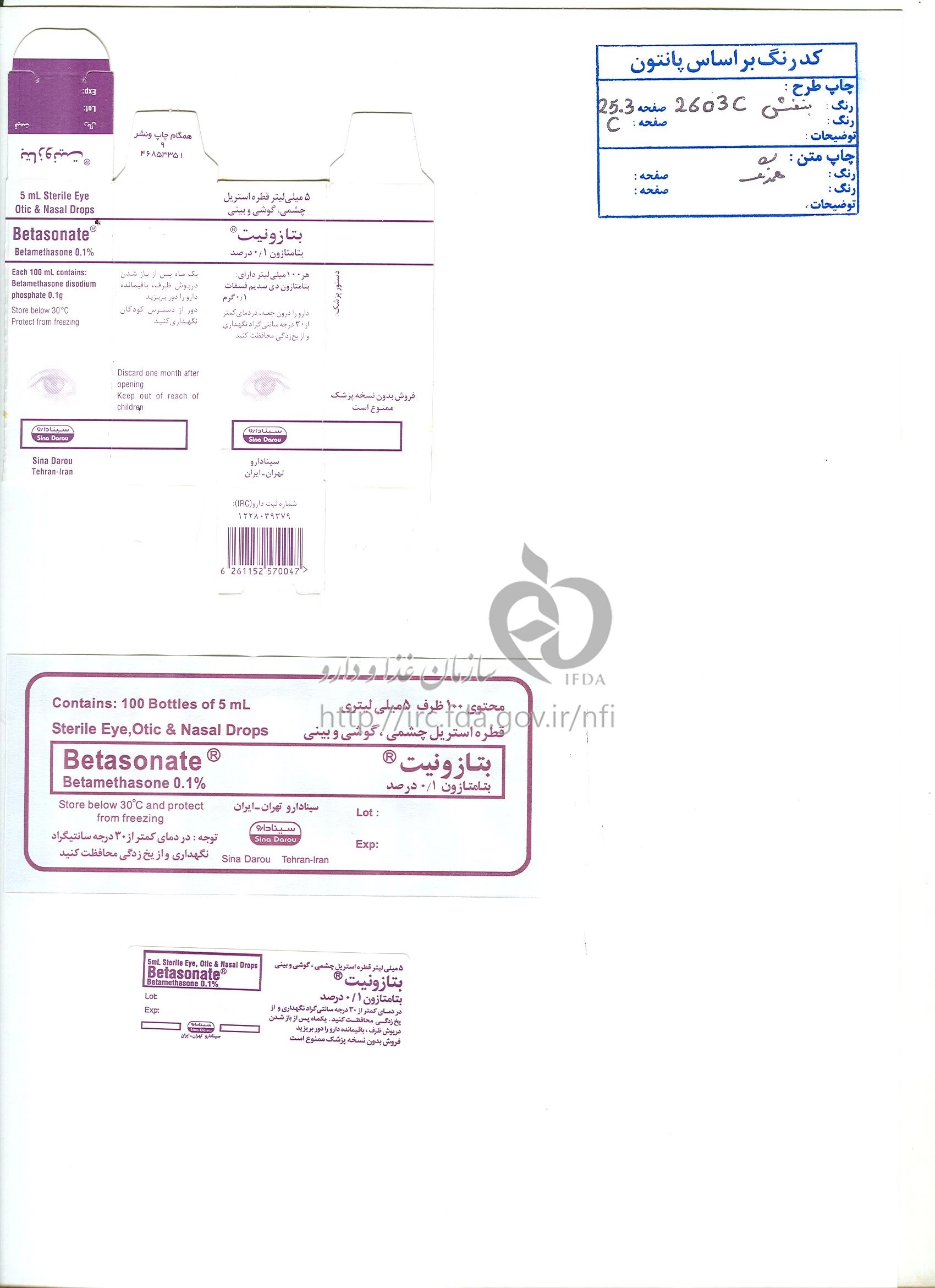 بتازونیت محلول ، قطره چشمی 0.1 % 5MILLILITER