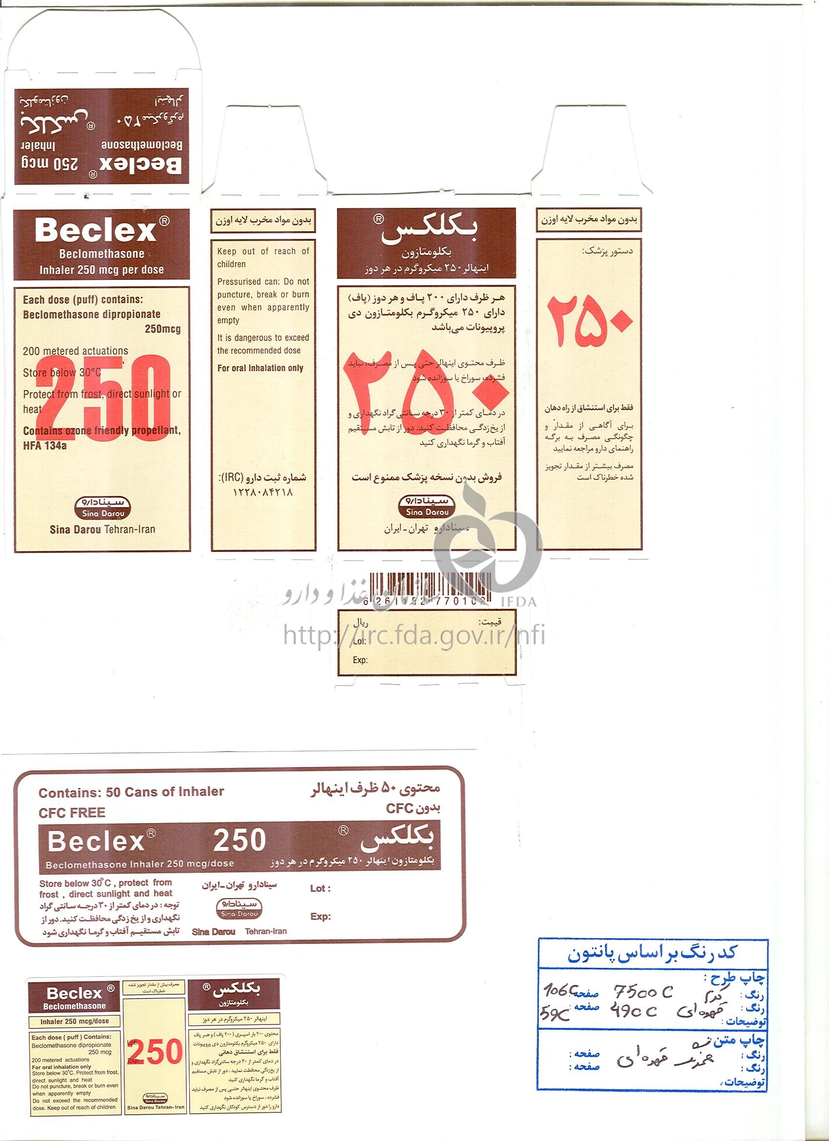 بکلکس اینهالر استنشاقی 250 ug/1{dose} 200PUFF