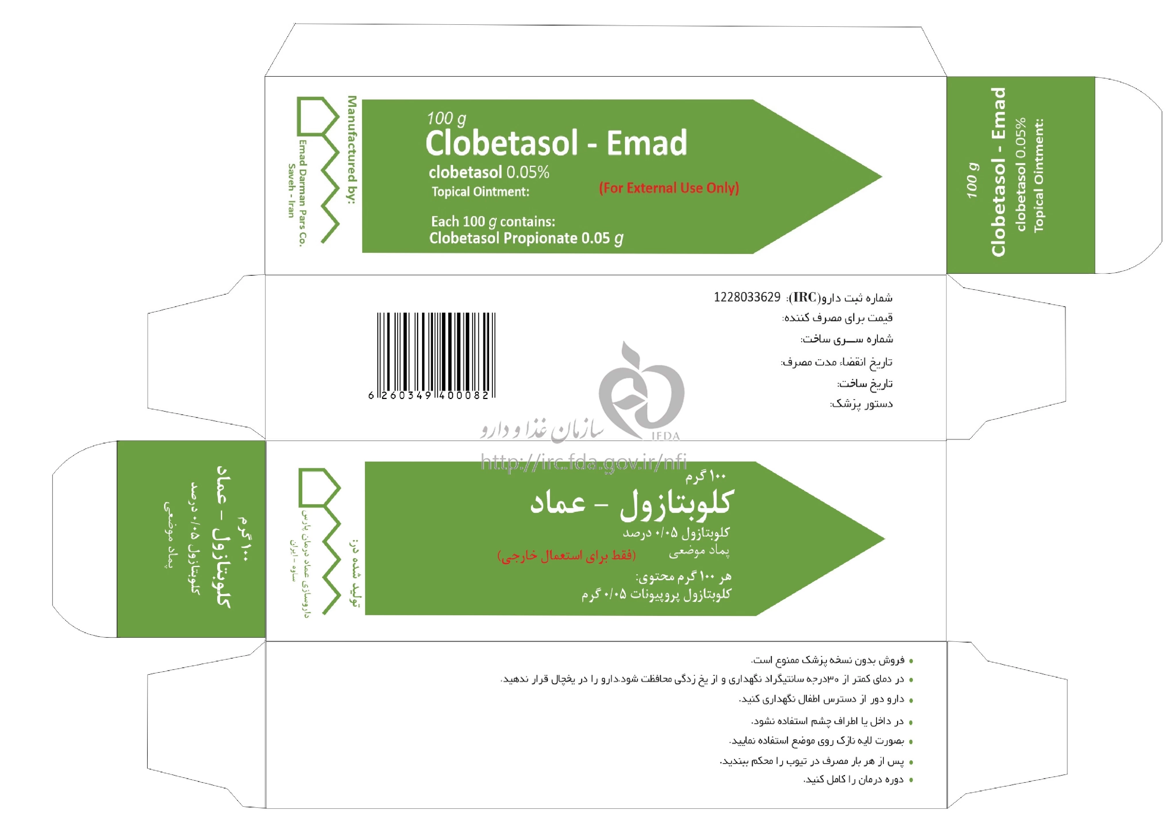 دکترها کلوبتازول - عماد پماد موضعی 0.05 % 100GRAM