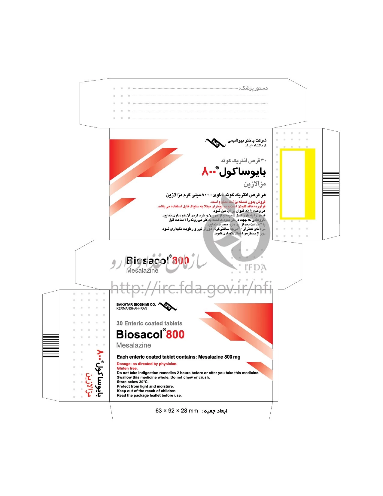 بایوساکول قرص انتریک کوتد خوراکی 800 mg