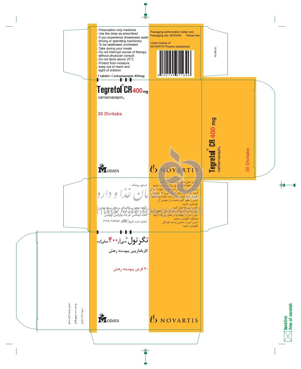 دکترها تگرتول سی آر قرص پیوسته رهش خوراکی 400 mg
