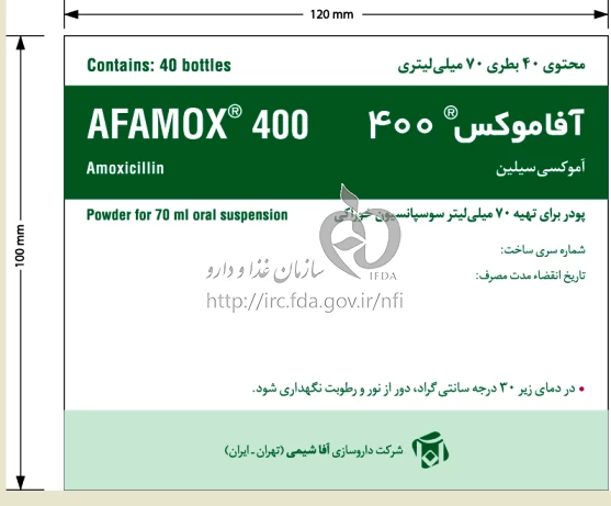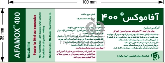 آفاموکس پودر برای تهیه سوسپانسیون خوراکی 400 mg/5 mL 70MILLILITER