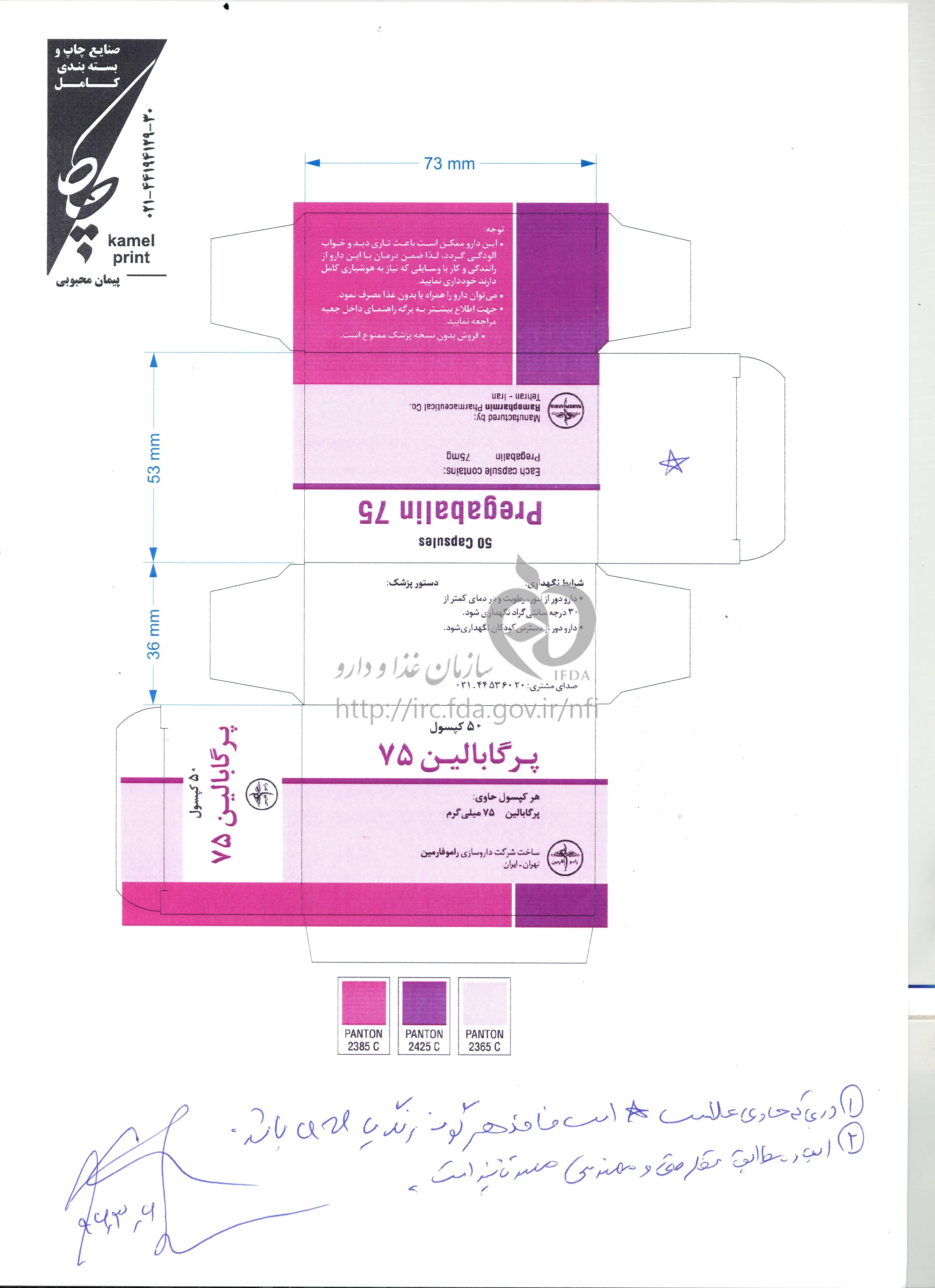 پرگابالین کپسول خوراکی 75 mg