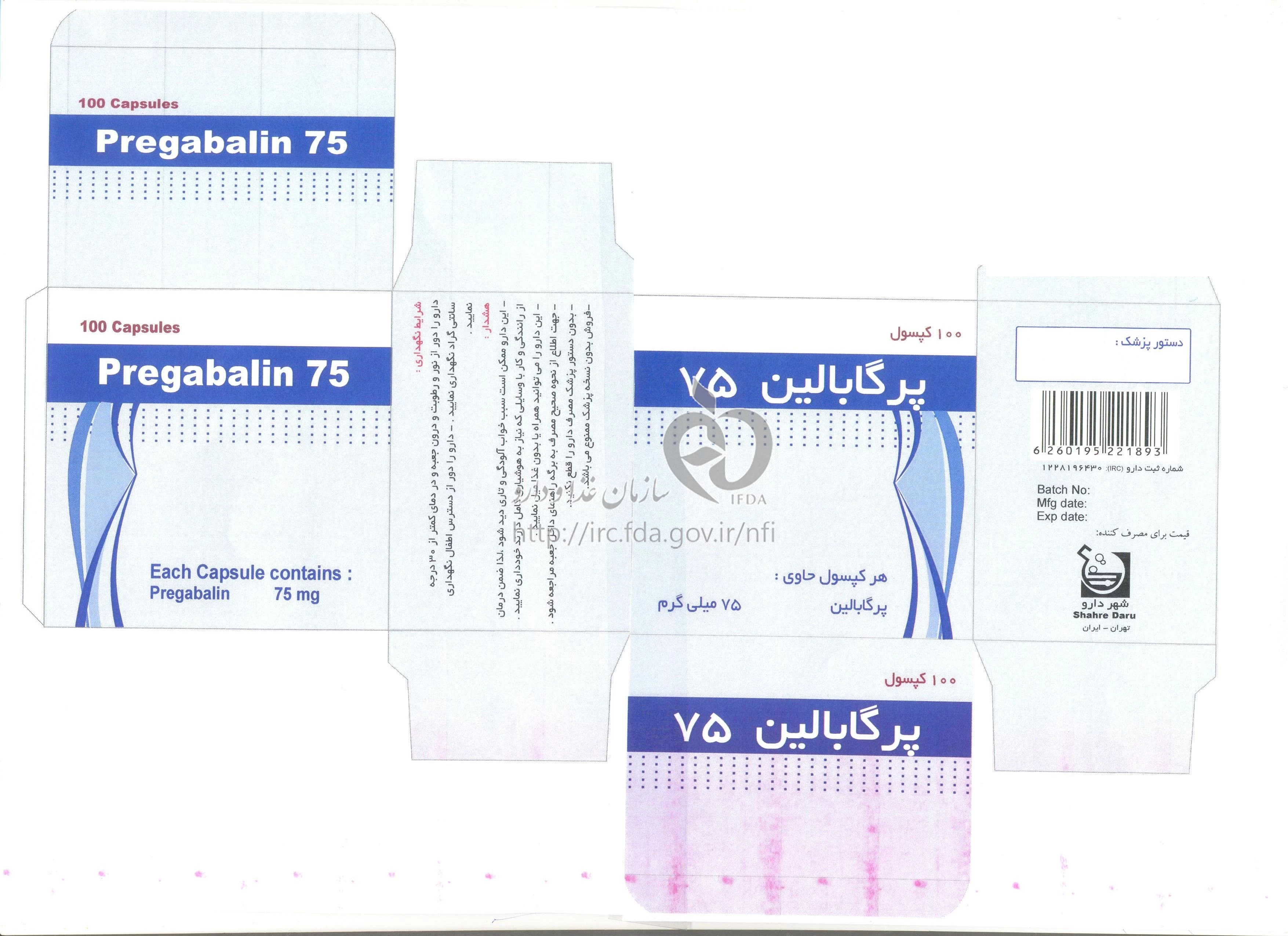 دکترها پرگابالین کپسول خوراکی 75 mg