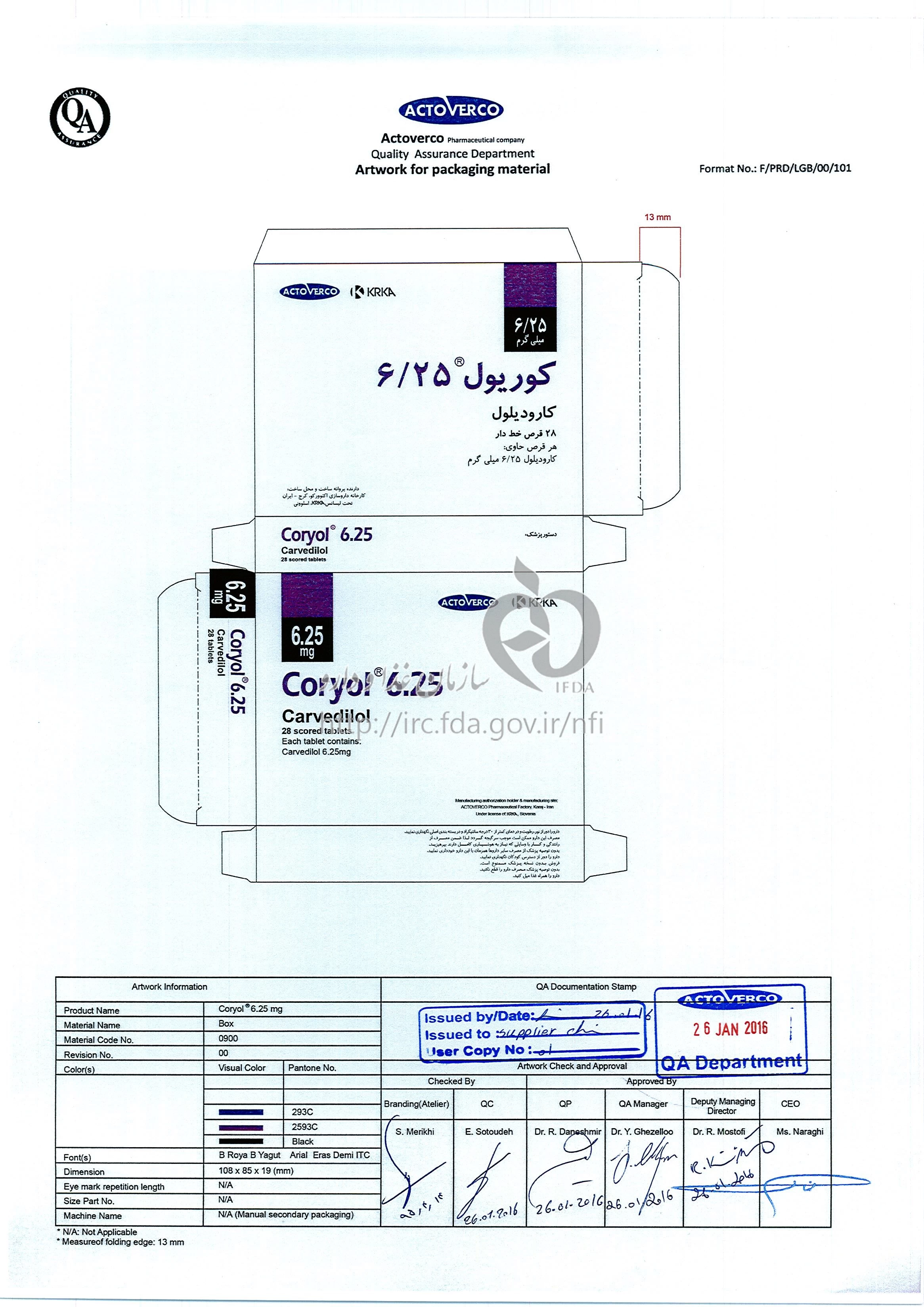 کوریول قرص خوراکی 6.25 mg