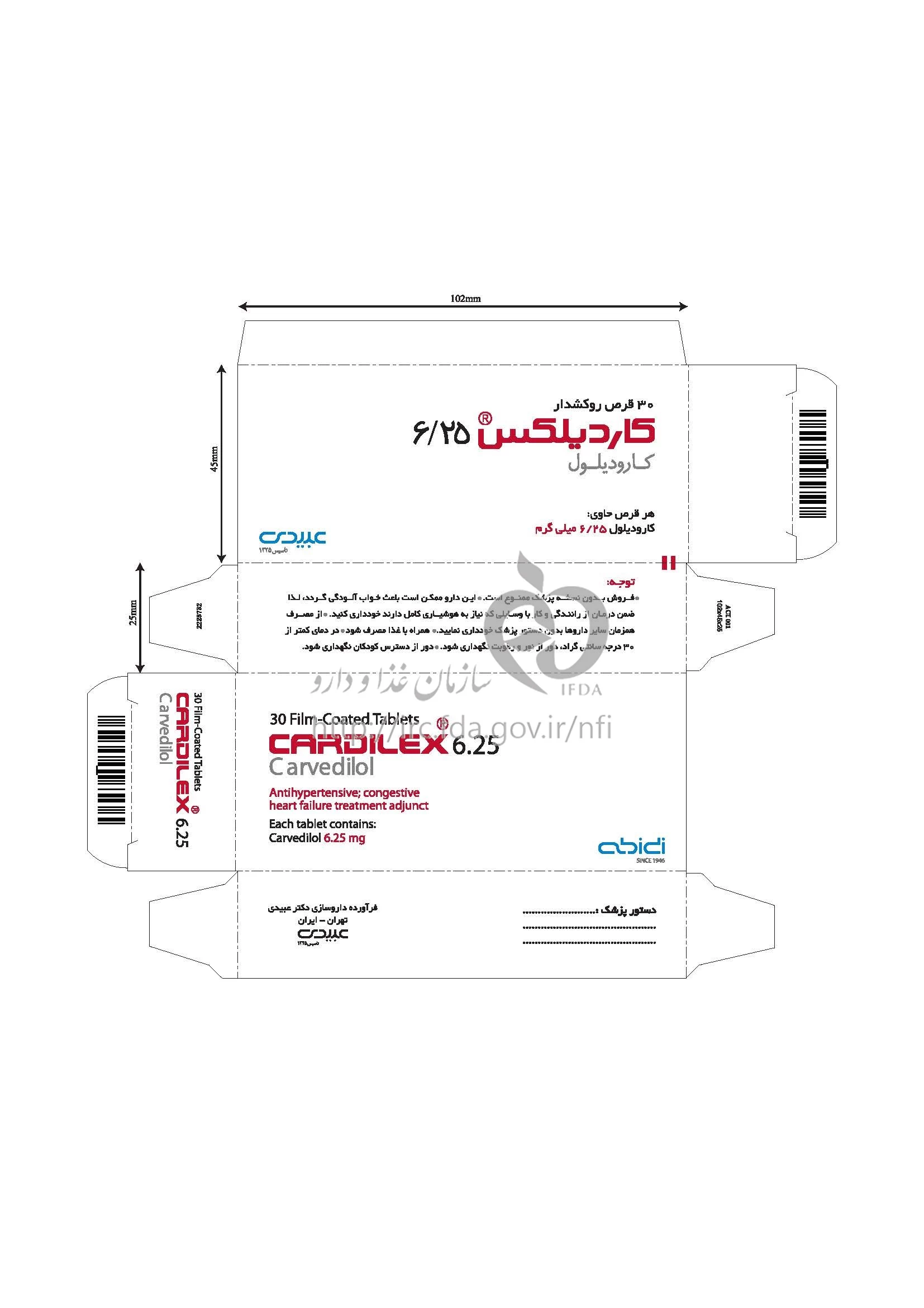 کاردیلکس قرص خوراکی 6.25 mg