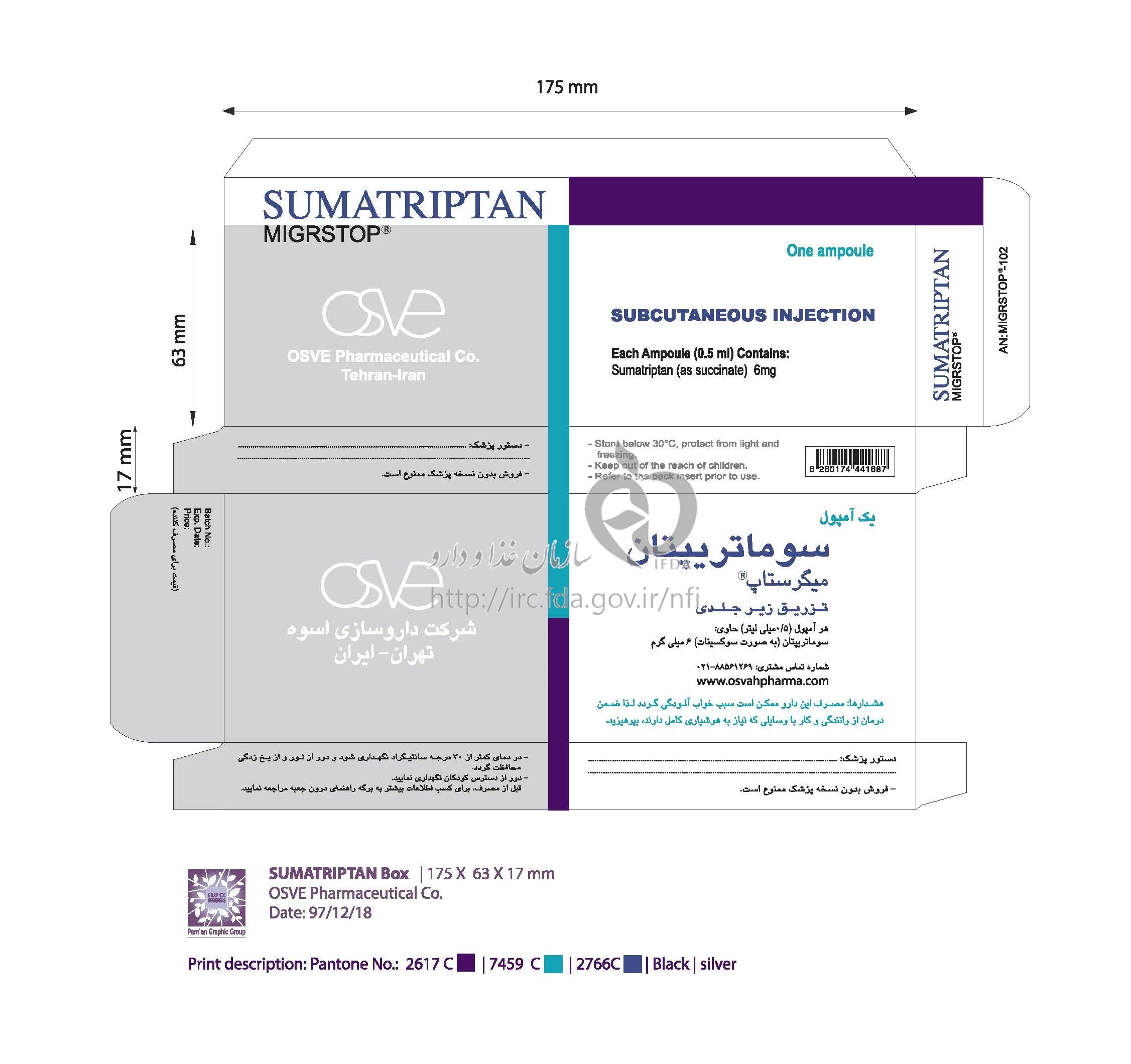 میگرستاپ تزریقی پرنترال 12 mg/1mL 0.5MILLILITER