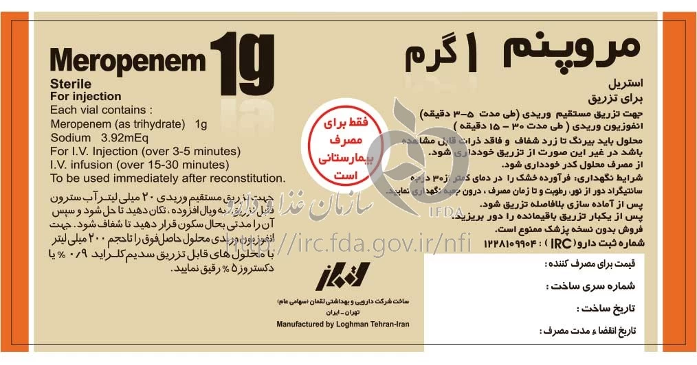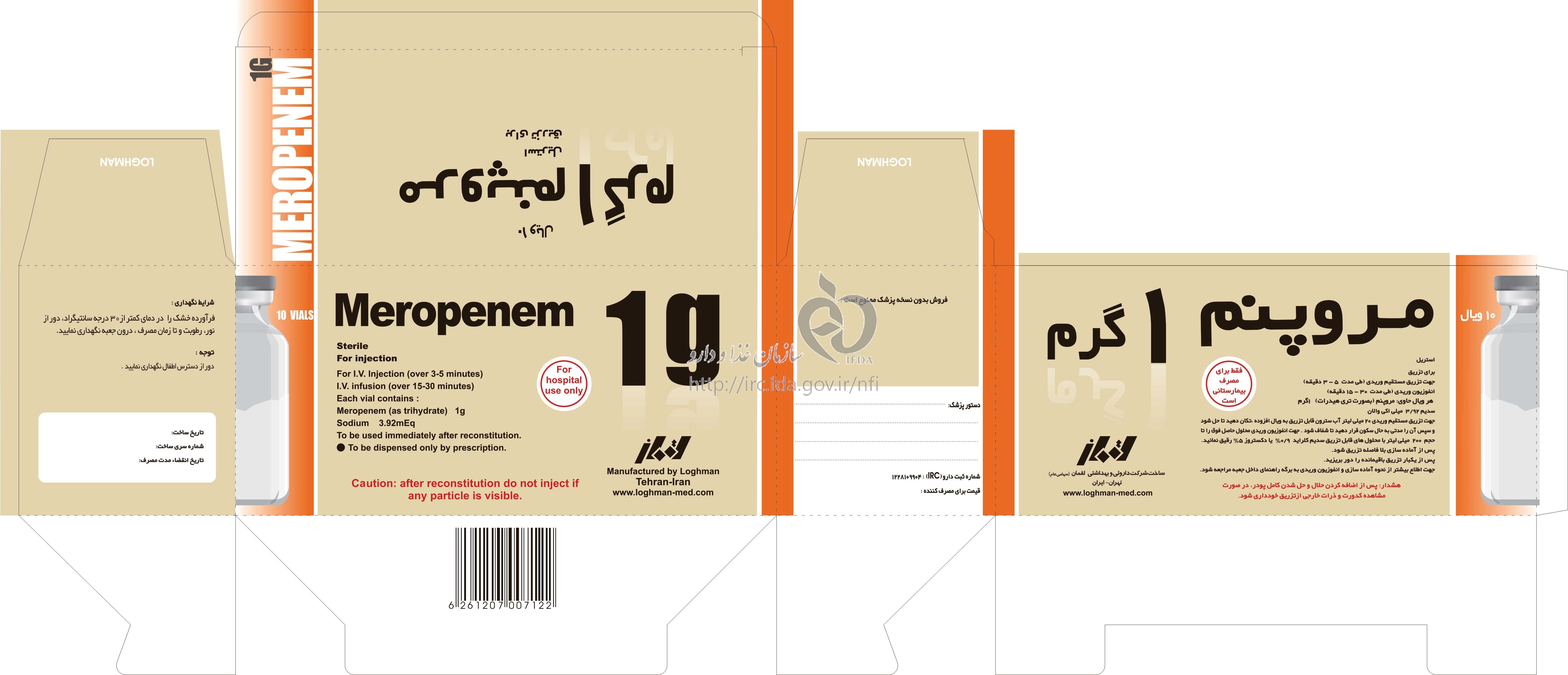 MEROPENEM INJECTION, POWDER, FOR SOLUTION PARENTERAL 1 g
