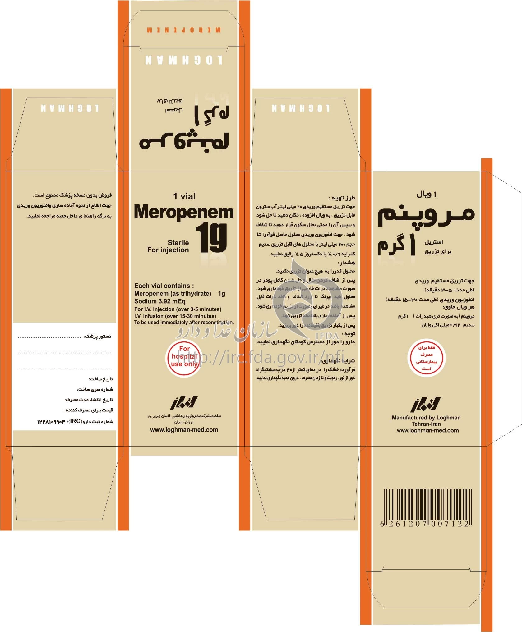 مروپنم پودر برای تهیه محلول تزریقی پرنترال 1 g