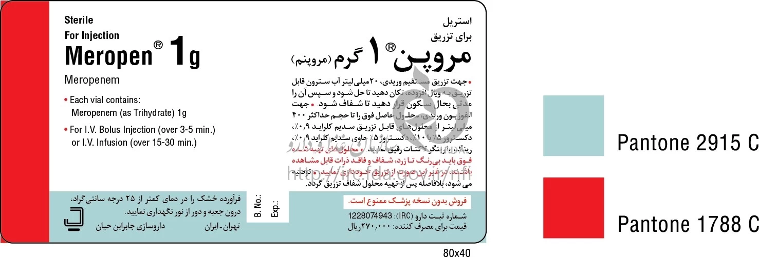 مروپن پودر برای تهیه محلول تزریقی پرنترال 1 g