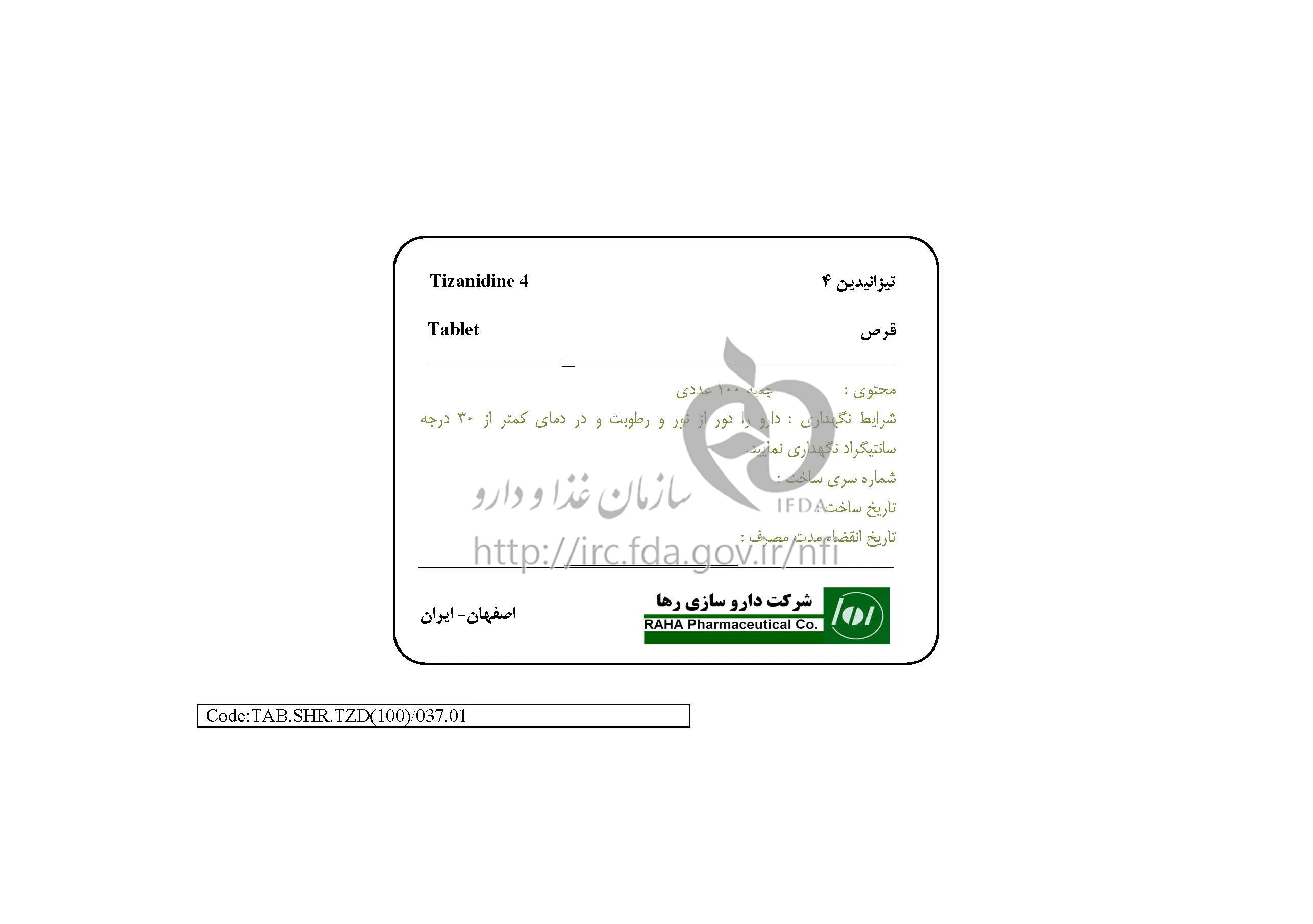 تیزانیدین قرص خوراکی 4 mg