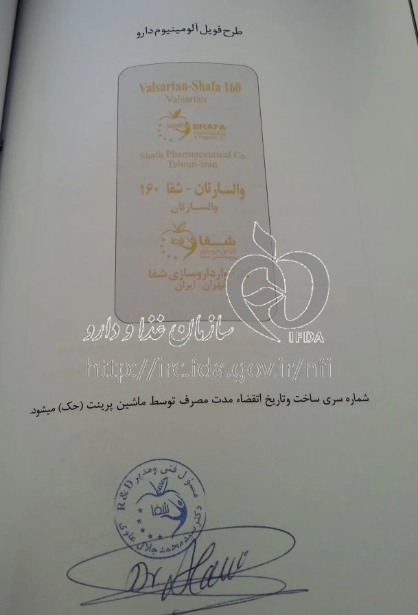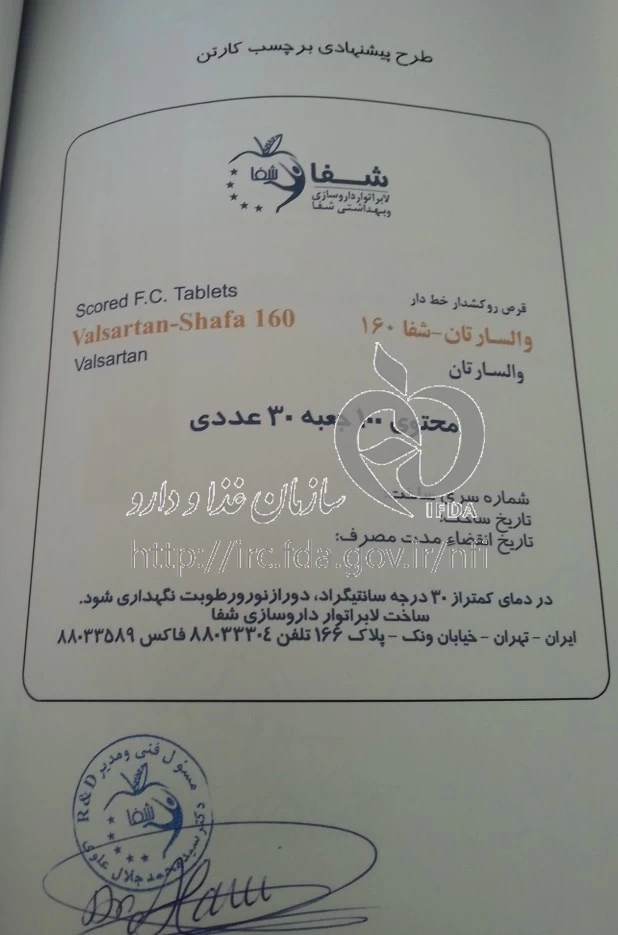 دکترها والسارتان - شفا قرص خوراکی 160 mg