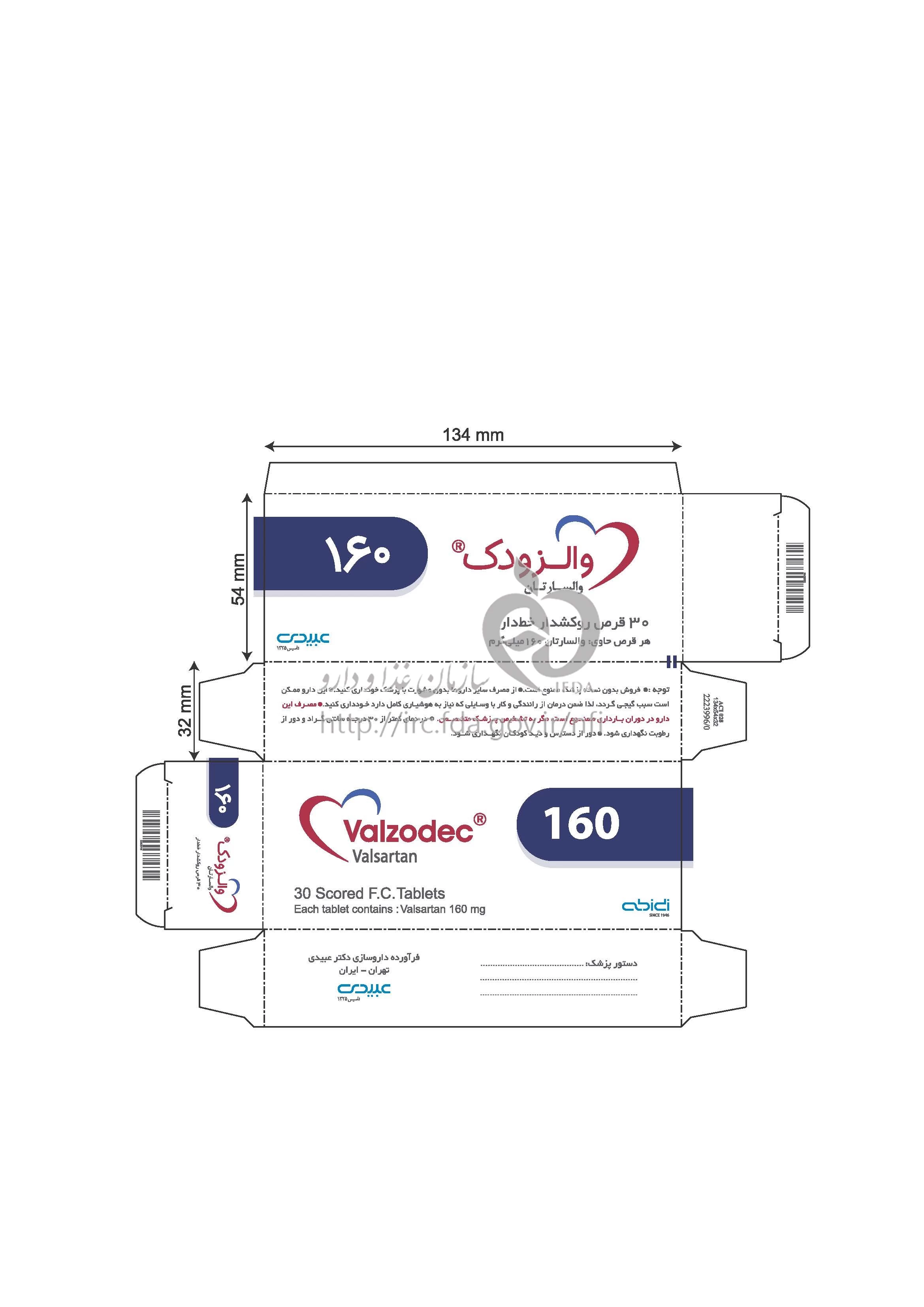 موارد مصرف والزودک قرص خوراکی 160 mg