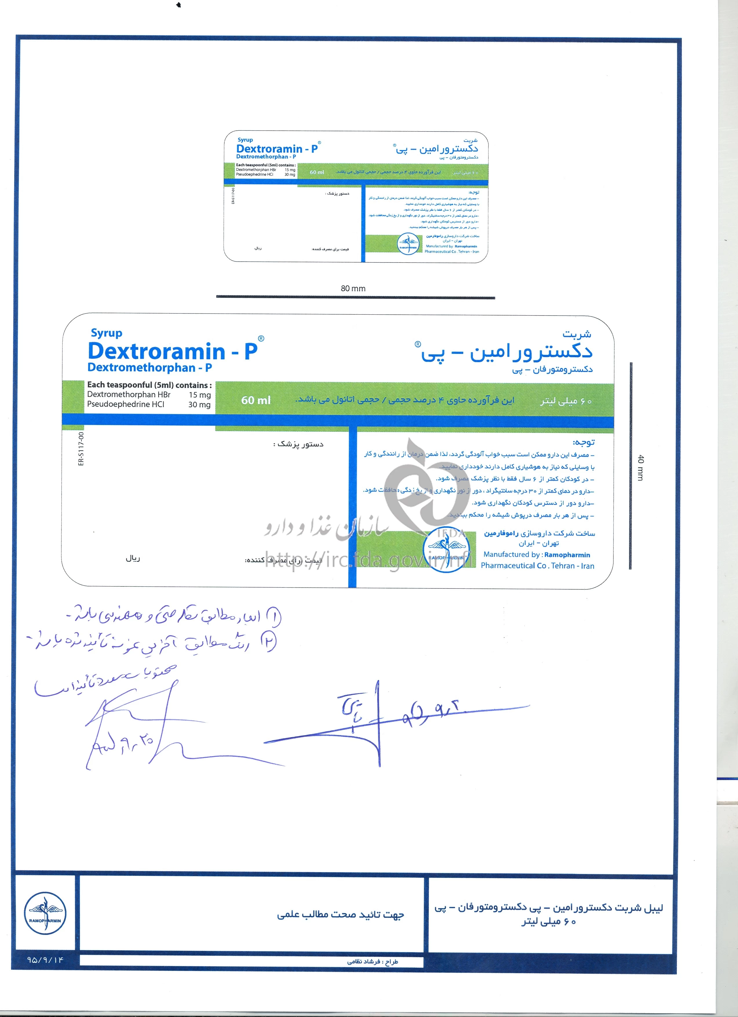 دکسترورامین - پی شربت خوراکی 15 mg/30 mg/5mL