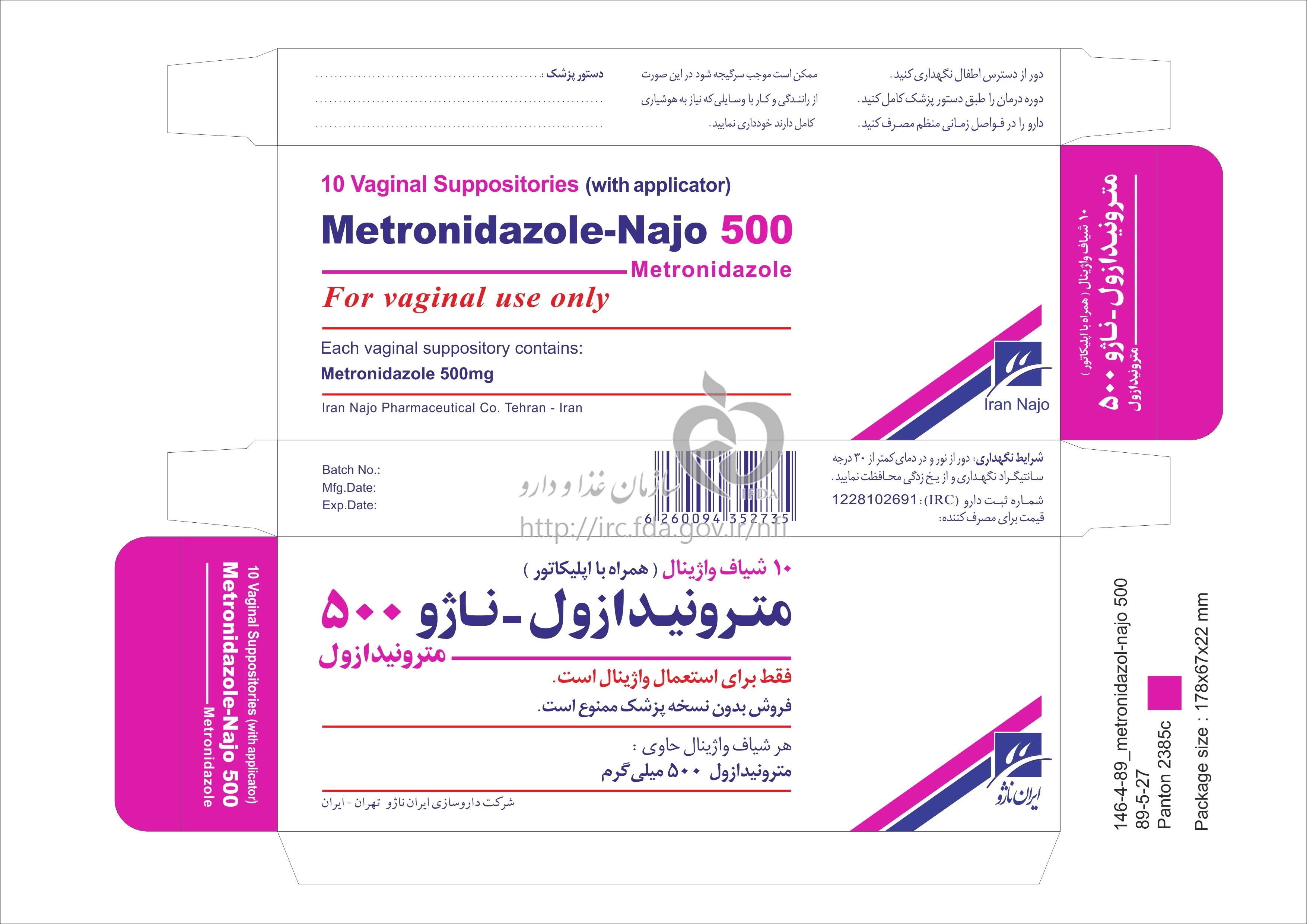 مترونیدازول - ناژو شیاف واژینال 500 mg