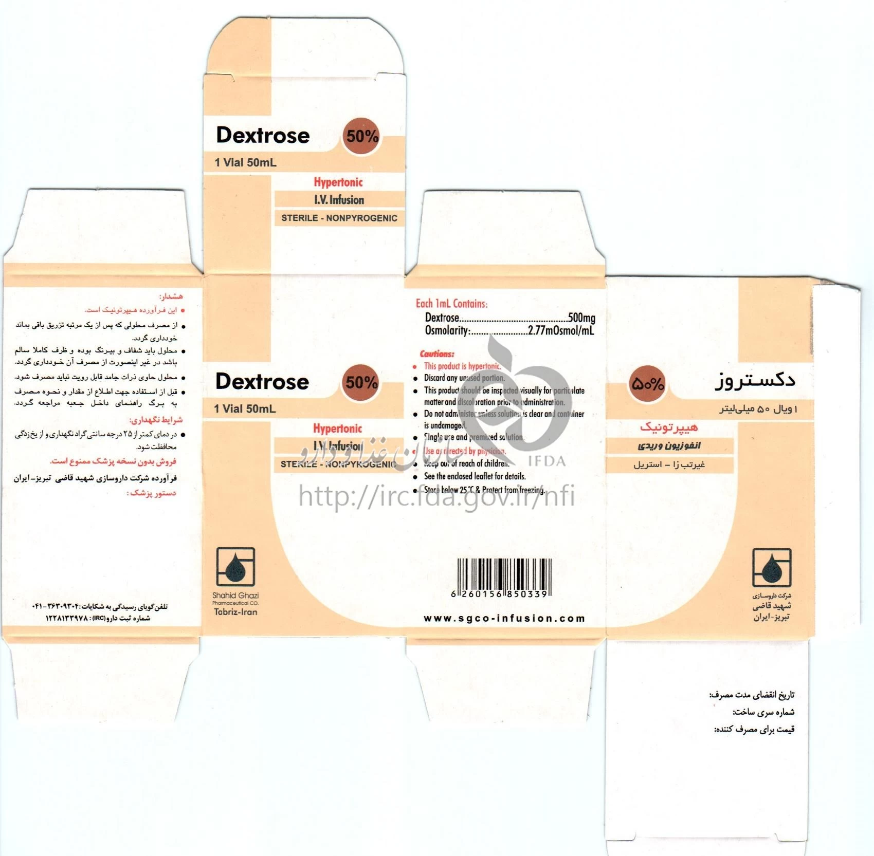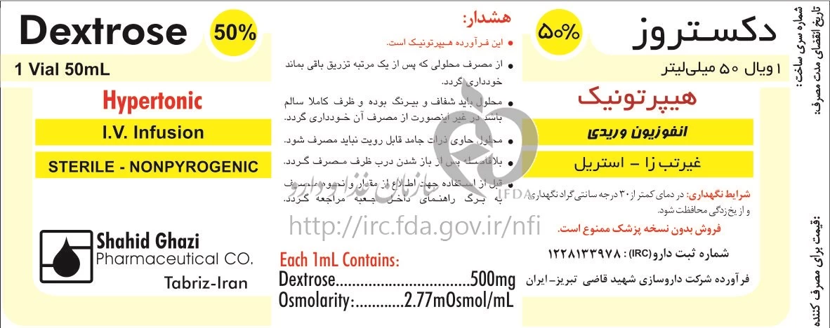 دکستروز محلول غلیظ تزریقی داخل وریدی 50 % 50MILLILITER
