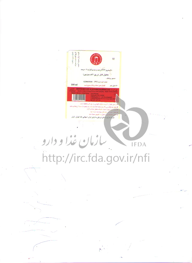 دکستروز/سدیم کلراید محلول تزریقی داخل وریدی 3.33 %/0.3 % 500MILLILITER