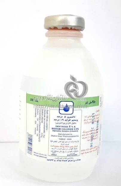 داروی DEXTROSE / NACL INJECTION، SOLUTION INTRAVENOUS 5%/0.9% 250MILLILITER شامل دو ماده فعال گلوکز (دکستروز) و ناکلورید سدیم است. این دارو به عنوان یک محلول وریدی استفاده می‌شود که برای جبران نیاز بدن به مایع، افزایش تامین انرژی و الکترولیت‌ها، درمان شوک و تحریک دهنده سیستم عصبی مرکزی به کار می‌رود. نحوه مصرف این دارو به صورت تزریق وریدی انجام می‌شود و توسط پزشک یا پرستار تجویز می‌شود. میزان و روش مصرف دارو توسط پزشک براساس وضعیت معدنی و مایع بدن و وضعیت بالینی بیمار تعیین می‌شود و باید همیشه تحت نظر پزشک قرار گیرد. درمان با این دارو برای برخی افراد ممکن است منجر به عوارض جانبی شود. بنابراین، پیش از استفاده از این دارو باید با پزشک خود مشورت کنید.