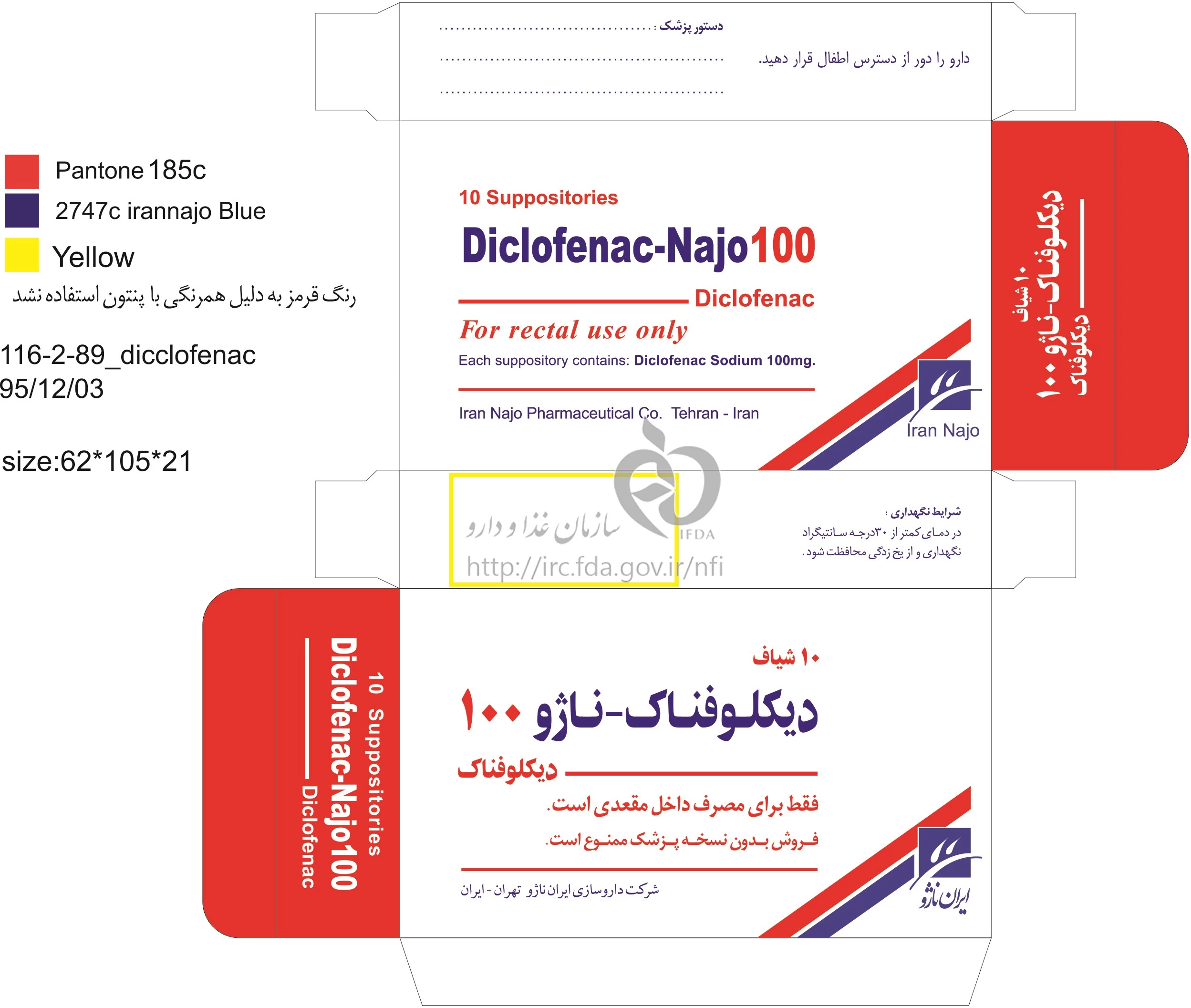دیکلوفناک - ناژو شیاف مقعدی 100 mg