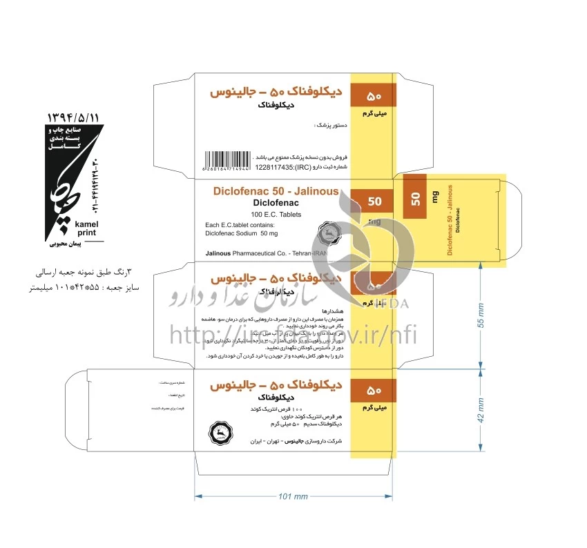 دیکلوفناک - جالینوس قرص انتریک کوتد خوراکی 50 mg