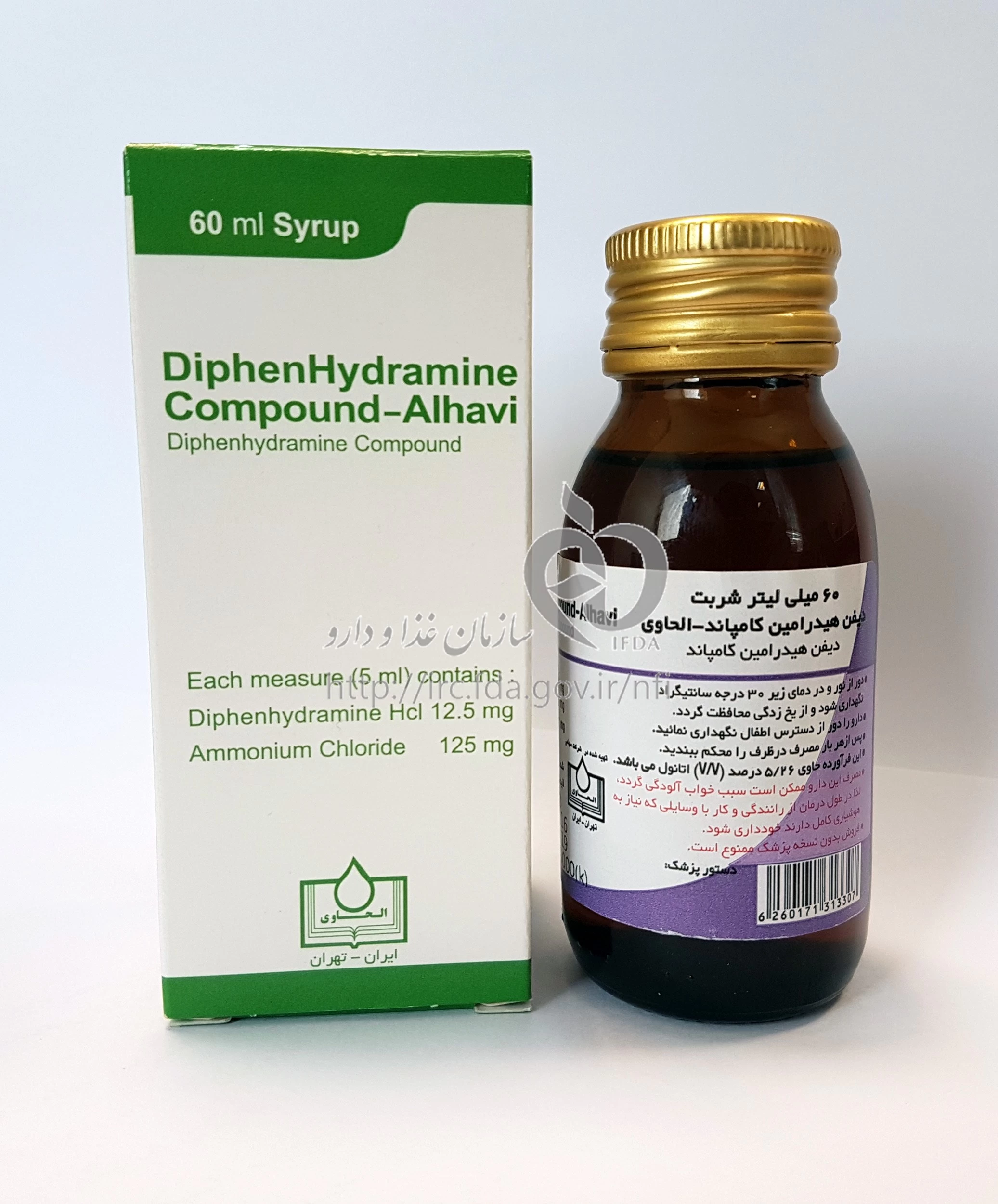 دیفن هیدرامین - الحاوی شربت خوراکی 12.5 mg/125 mg/5mL 60MILLILITER