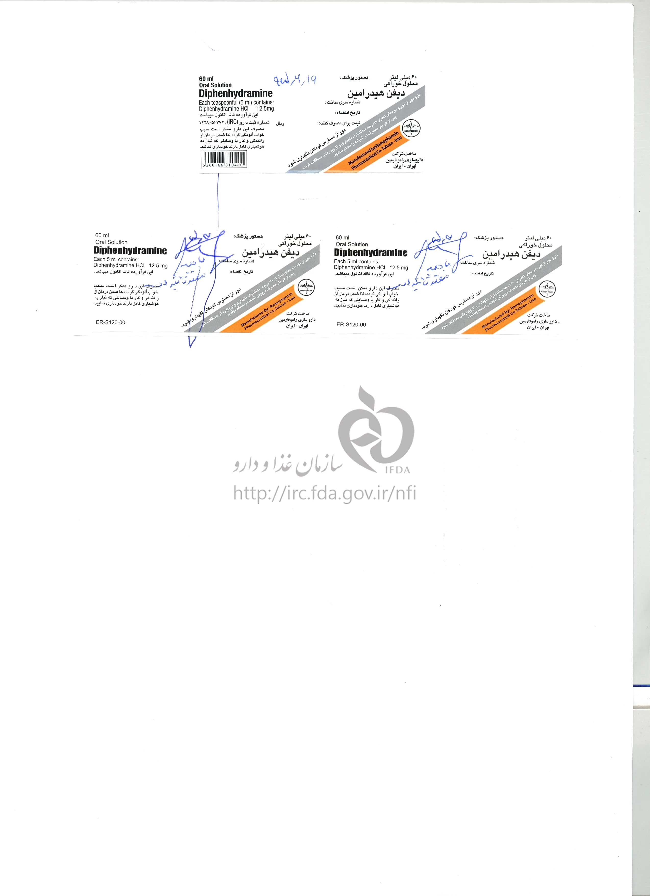 دیفن هیدرامین محلول خوراکی 12.5 mg/5mL 60MILLILITER