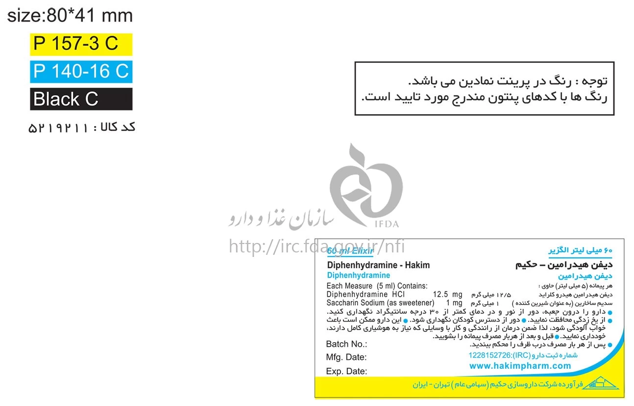 دیفن هیدرامین - حکیم محلول خوراکی 12.5 mg/5mL 60MILLILITER