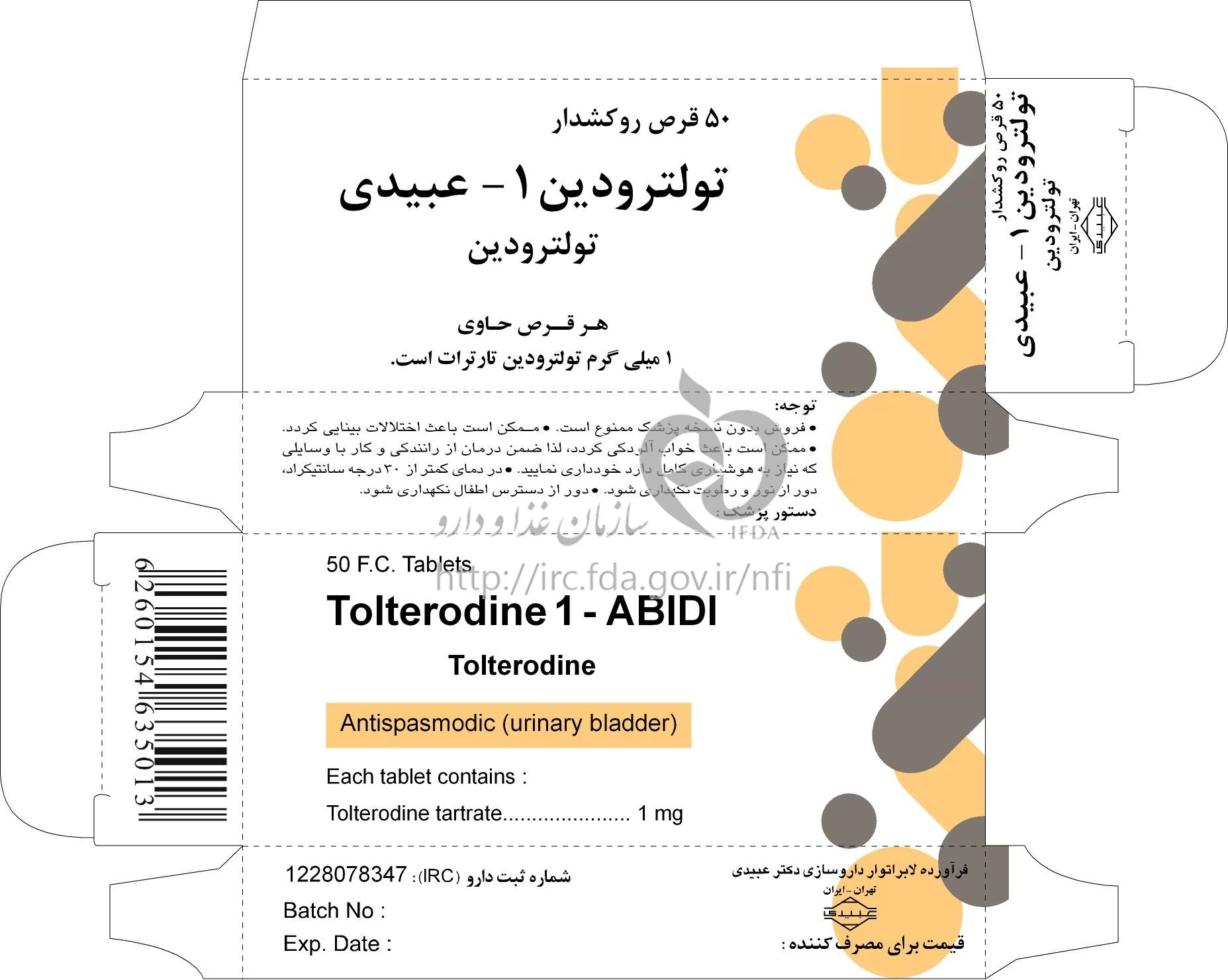 تولترودین - عبیدی قرص خوراکی 1 mg