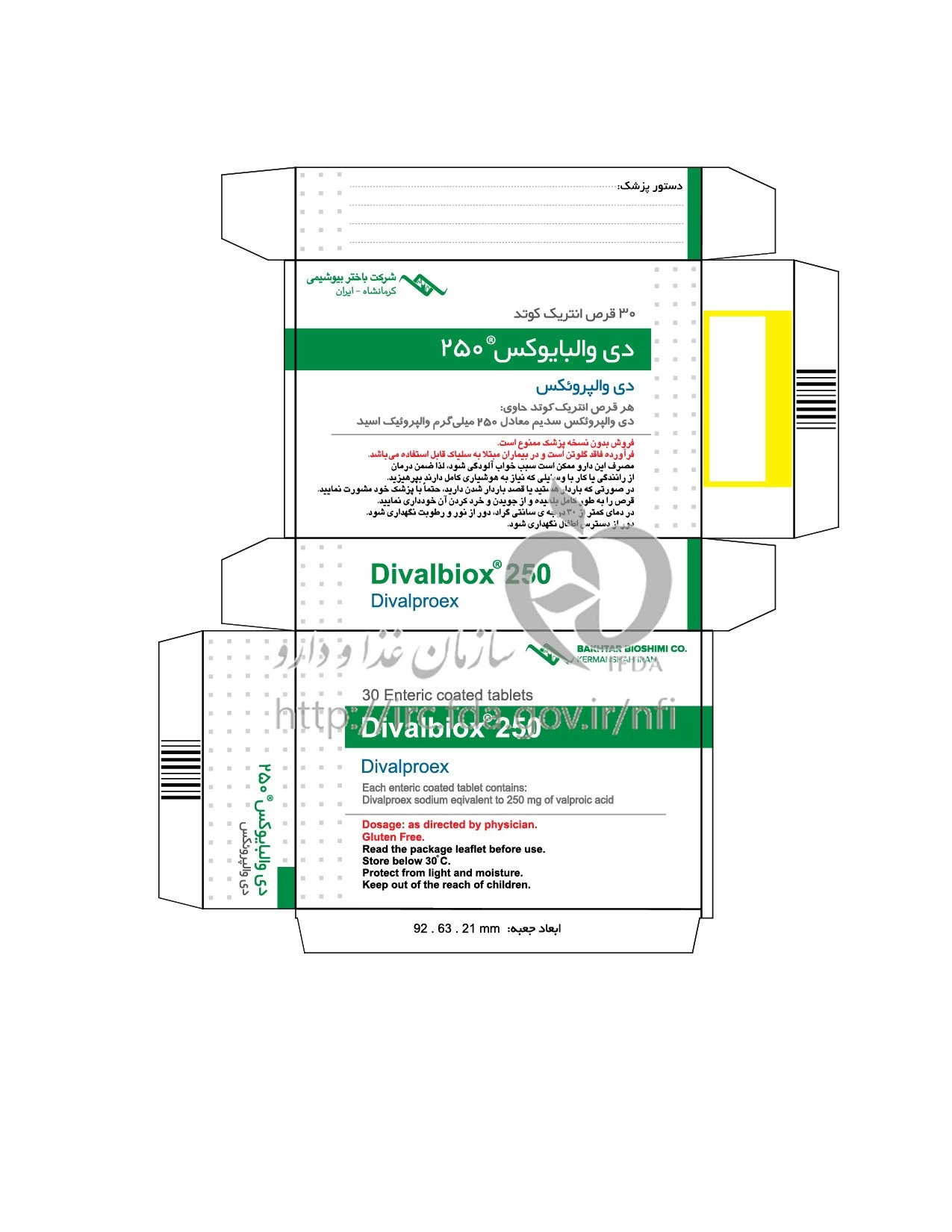 دی والبایوکس قرص انتریک کوتد خوراکی 250 mg